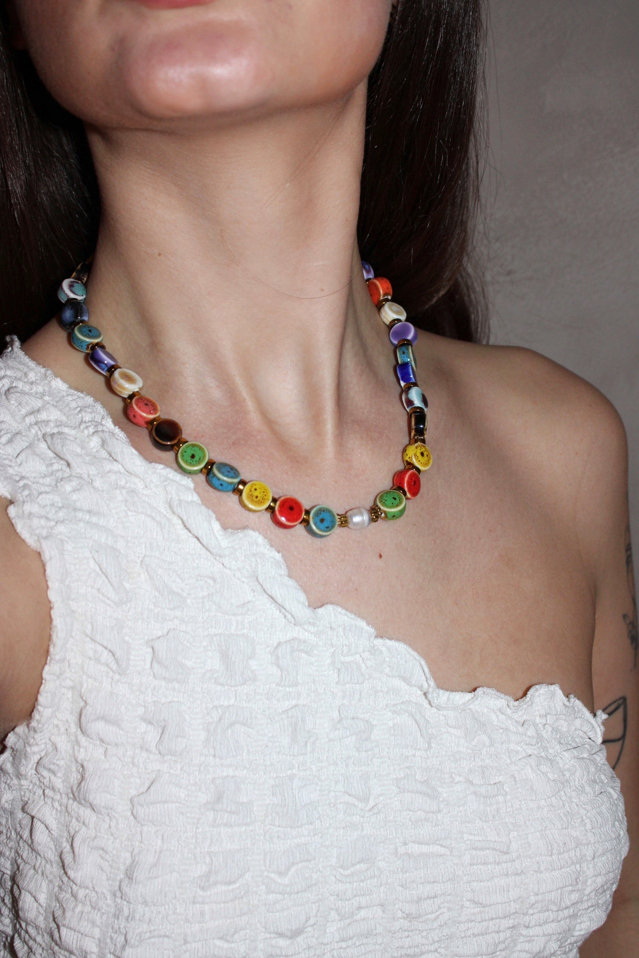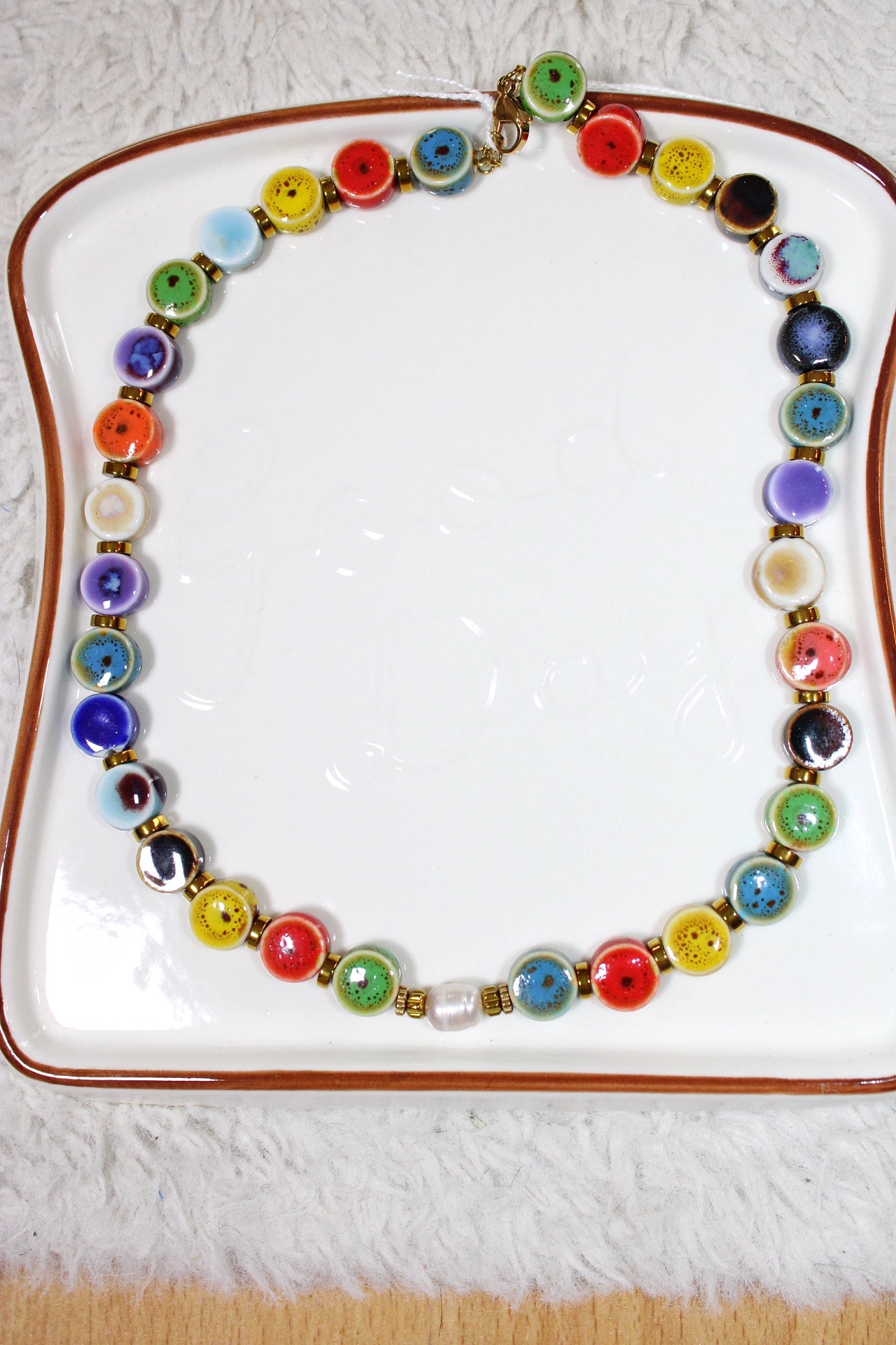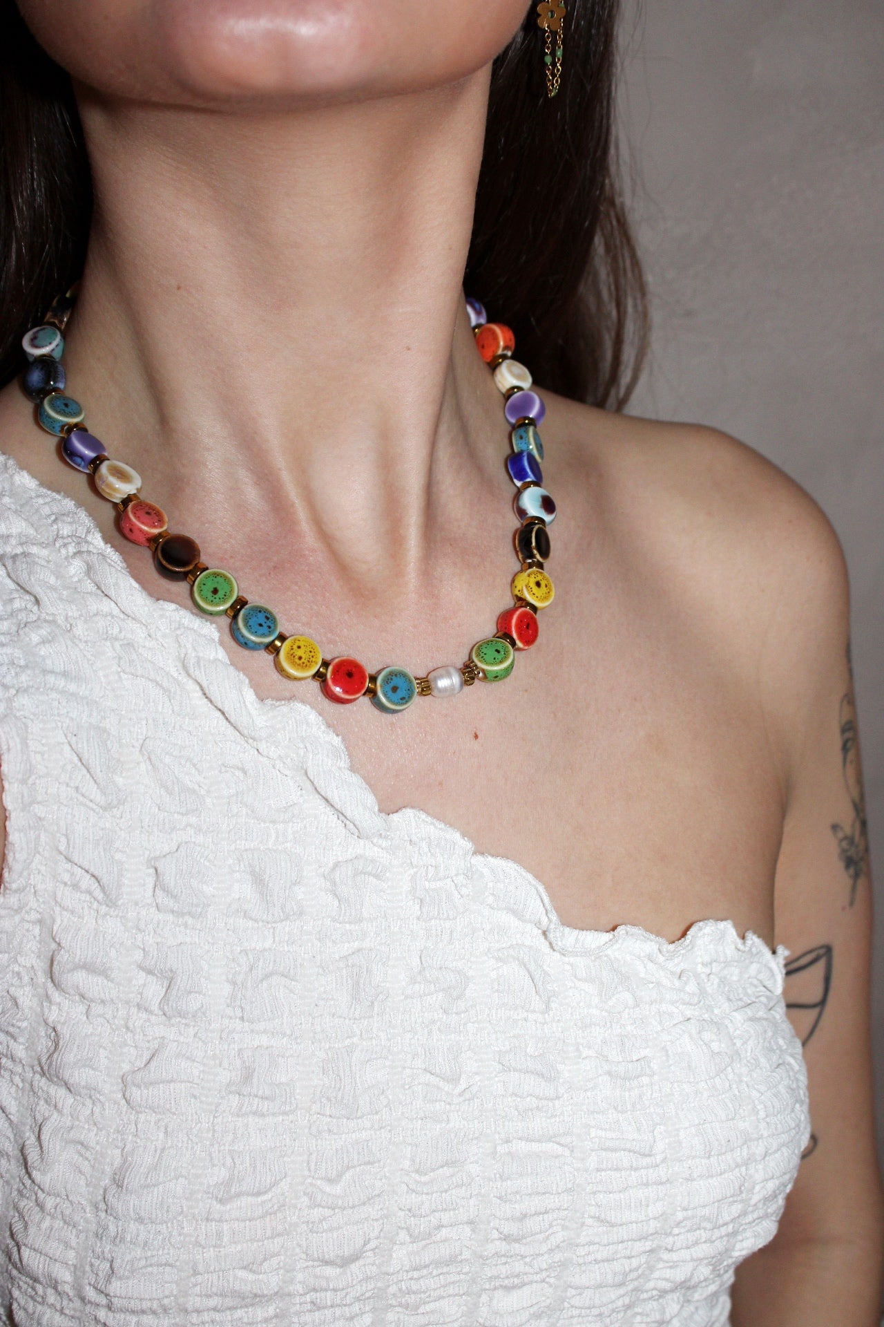 Apportez une touche de couleur et d’élégance à votre tenue avec ce collier fantaisie multicolore, composé de perles en résine aux teintes vibrantes et de perles d’hématite dorée au fini brillant. Léger et confortable, ce bijou illumine aussi bien une tenue quotidienne qu’un look plus habillé.