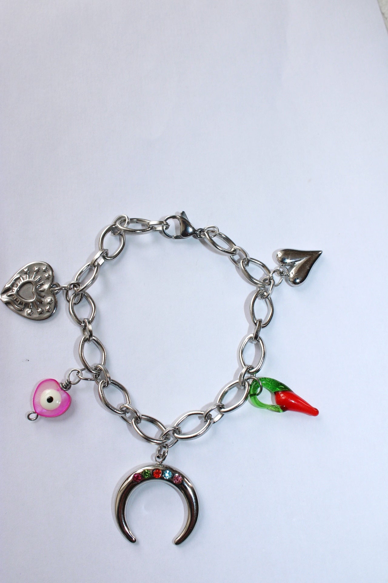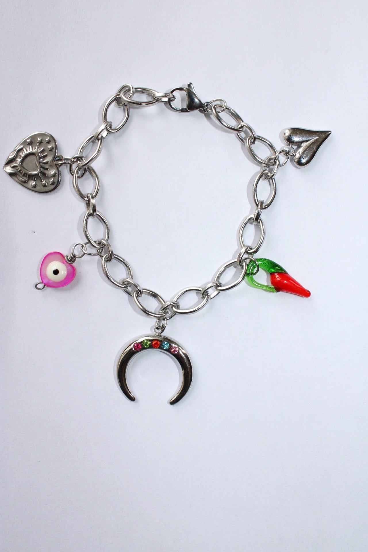 Craquez pour ce bracelet tendance en chaîne argent fabriqué en acier inoxydable, orné d'une breloque délicate qui apporte une touche de fantaisie chic.