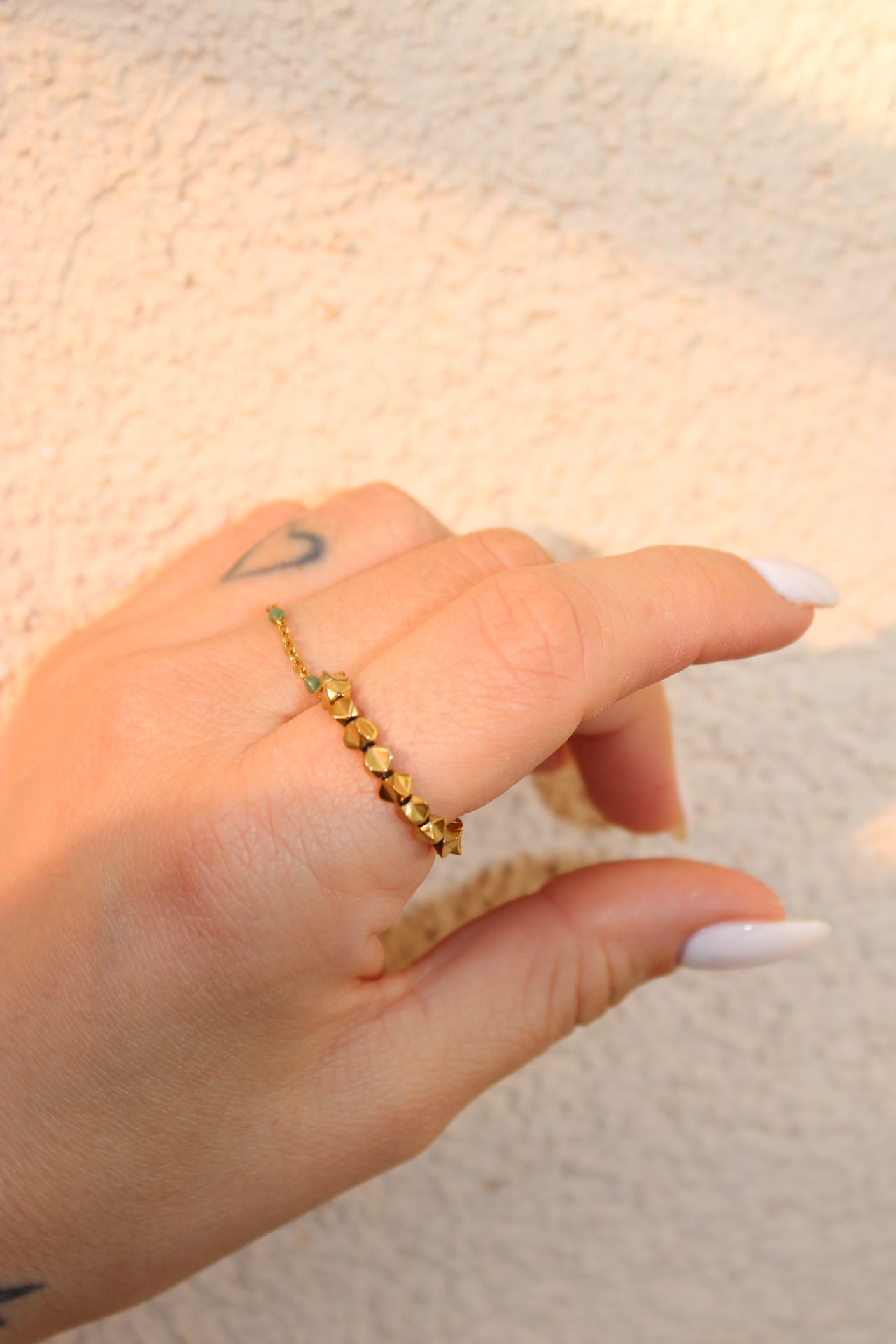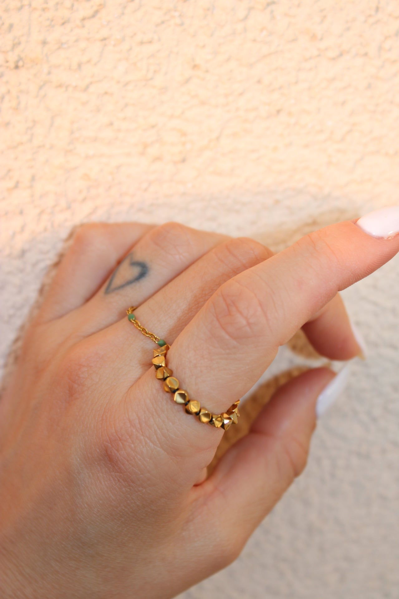 Bague en perles hématite dorées.