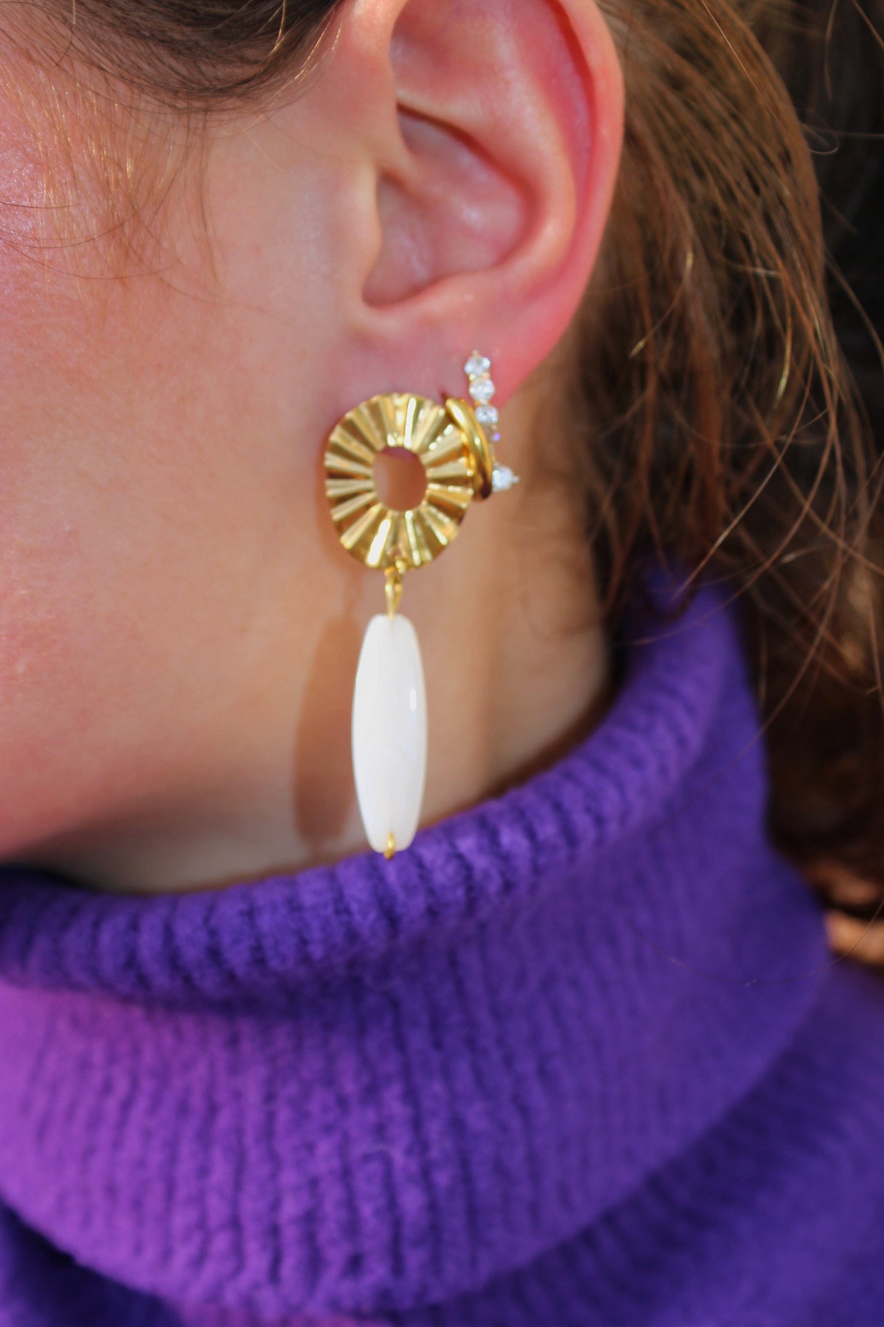 Élégantes et raffinées, ces boucles d’oreilles pendantes en acier inoxydable doré subliment votre style avec leur design intemporel et leurs perles nacrées délicatement suspendues. Conçues pour allier modernité et féminité, elles apportent une touche chic et lumineuse à toutes vos tenues, du quotidien aux occasions spéciales.
