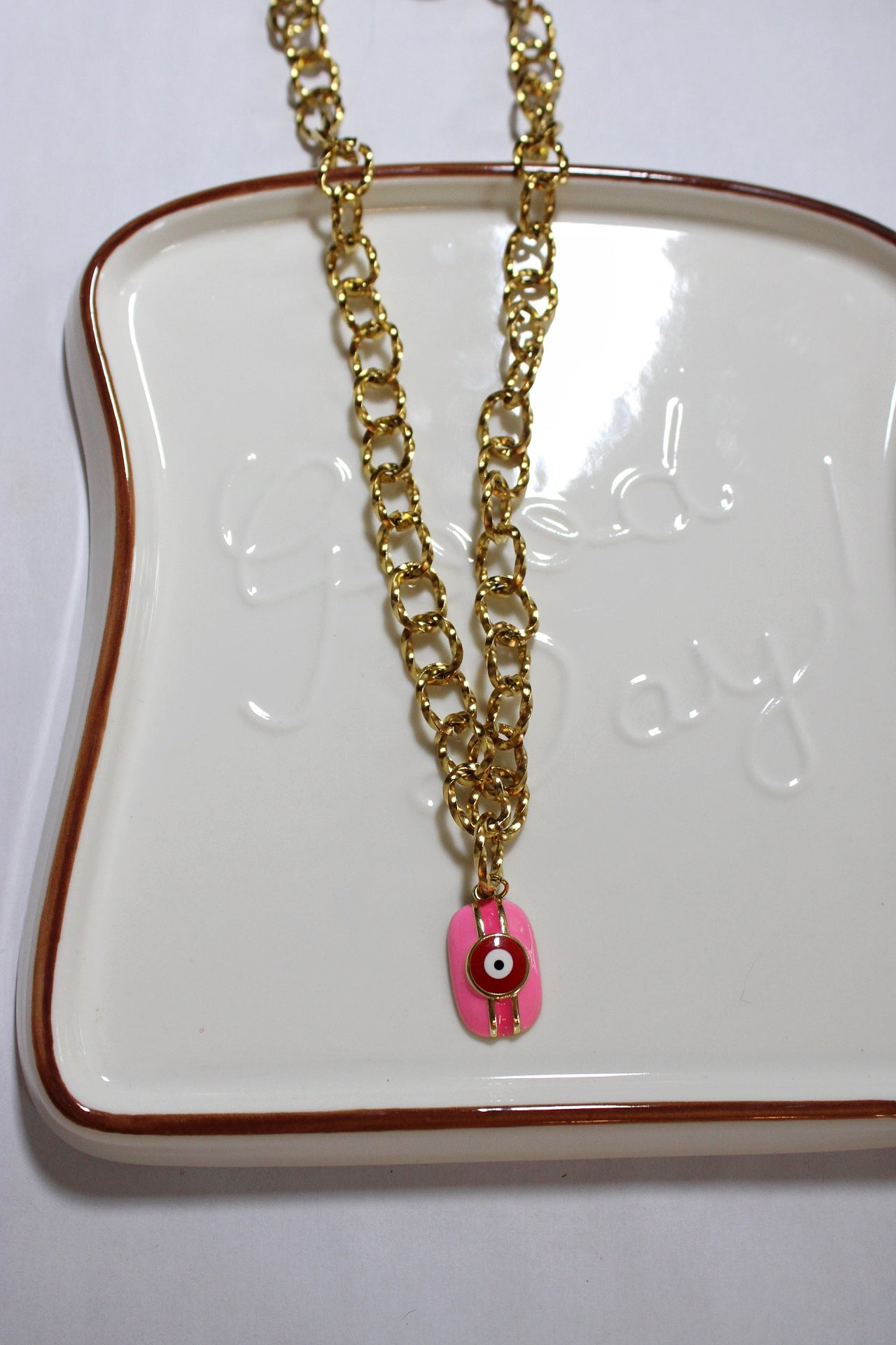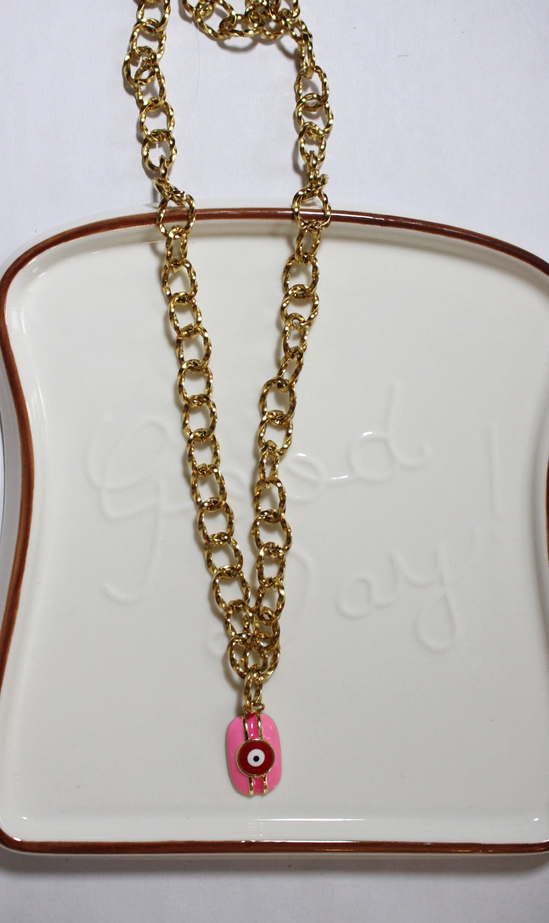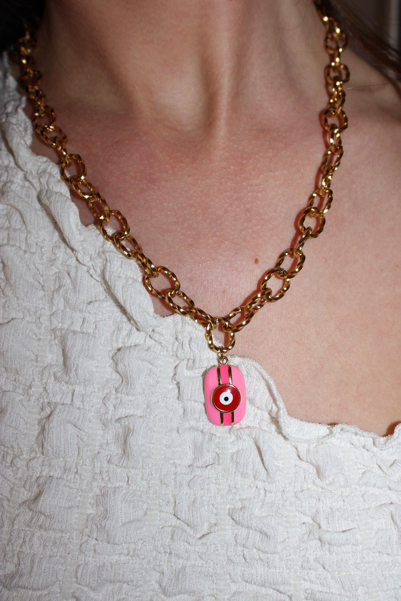Craquez pour ce collier en acier inoxydable orné d’un pendentif oeil grec rose, un bijou fantaisie qui allie romantisme et éclat. Fabriqué en acier inoxydable de haute qualité ce collier est résistant à l’oxydation et ne ternit pas assurant une brillance durable.
