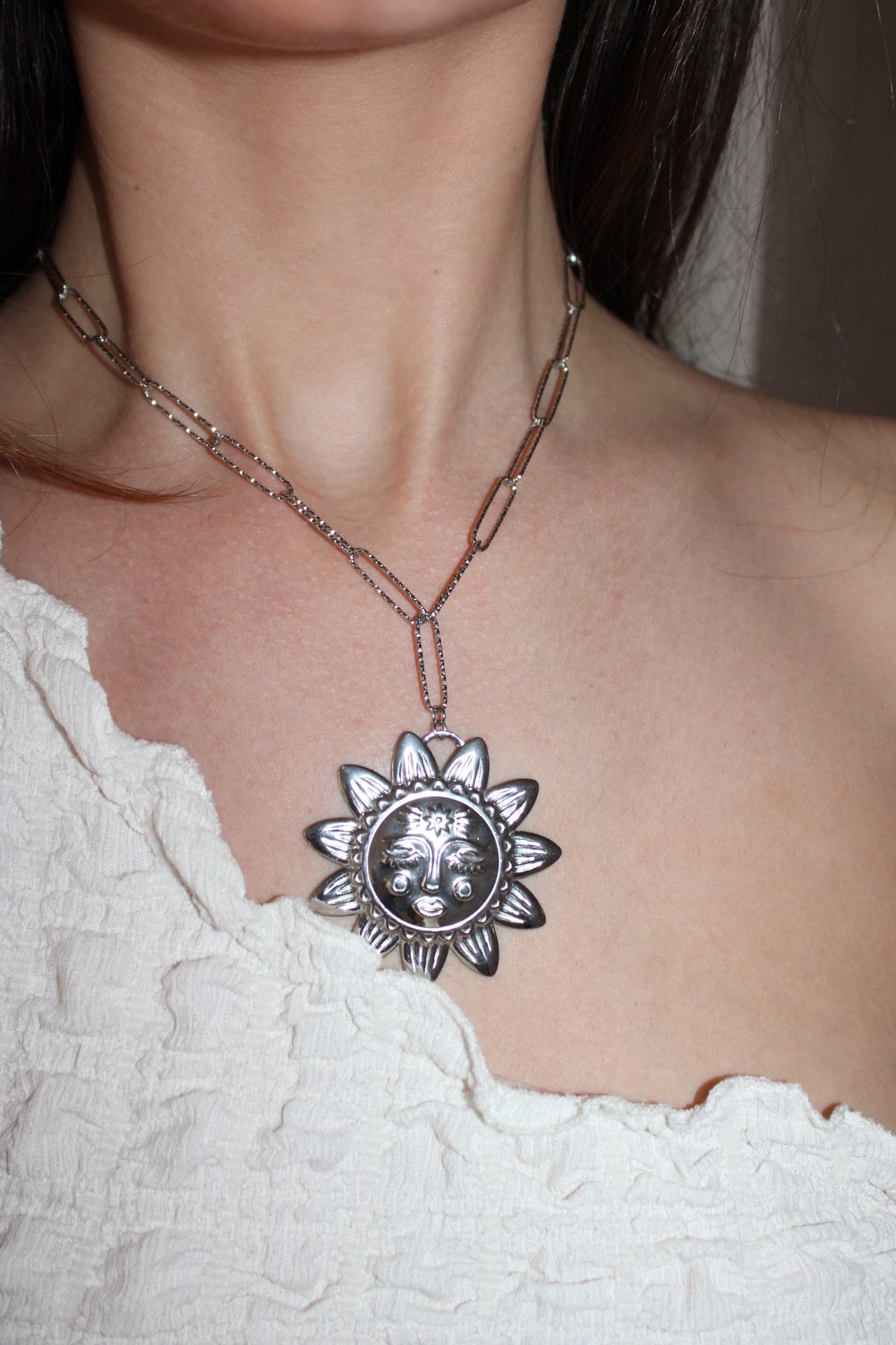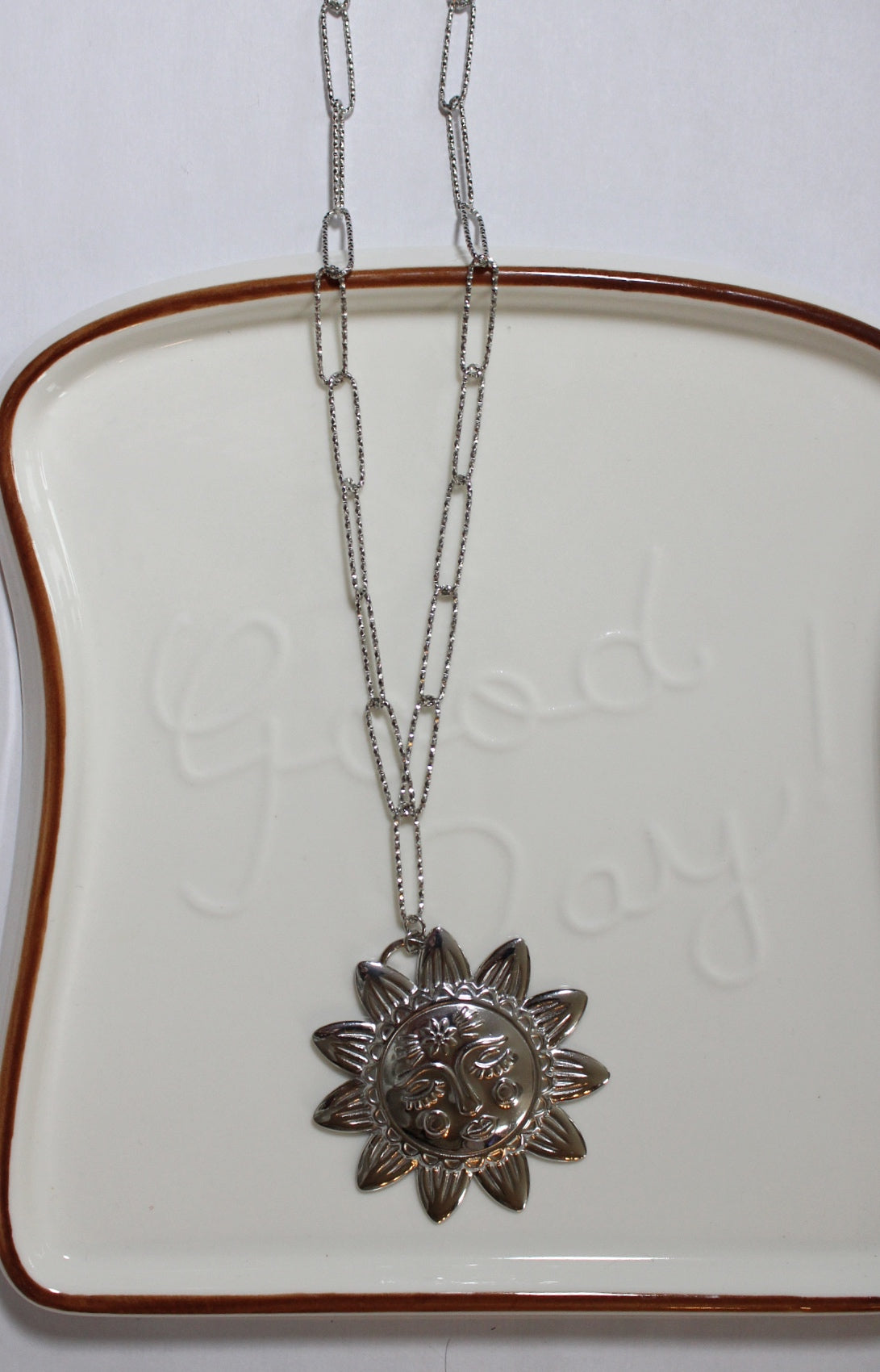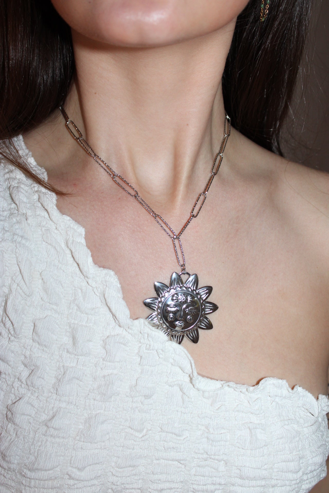 Craquez pour ce collier en acier inoxydable orné d’un pendentif soleil, un bijou fantaisie qui allie romantisme et éclat. Fabriqué en acier inoxydable de haute qualité ce collier est résistant à l’oxydation et ne ternit pas assurant une brillance durable.