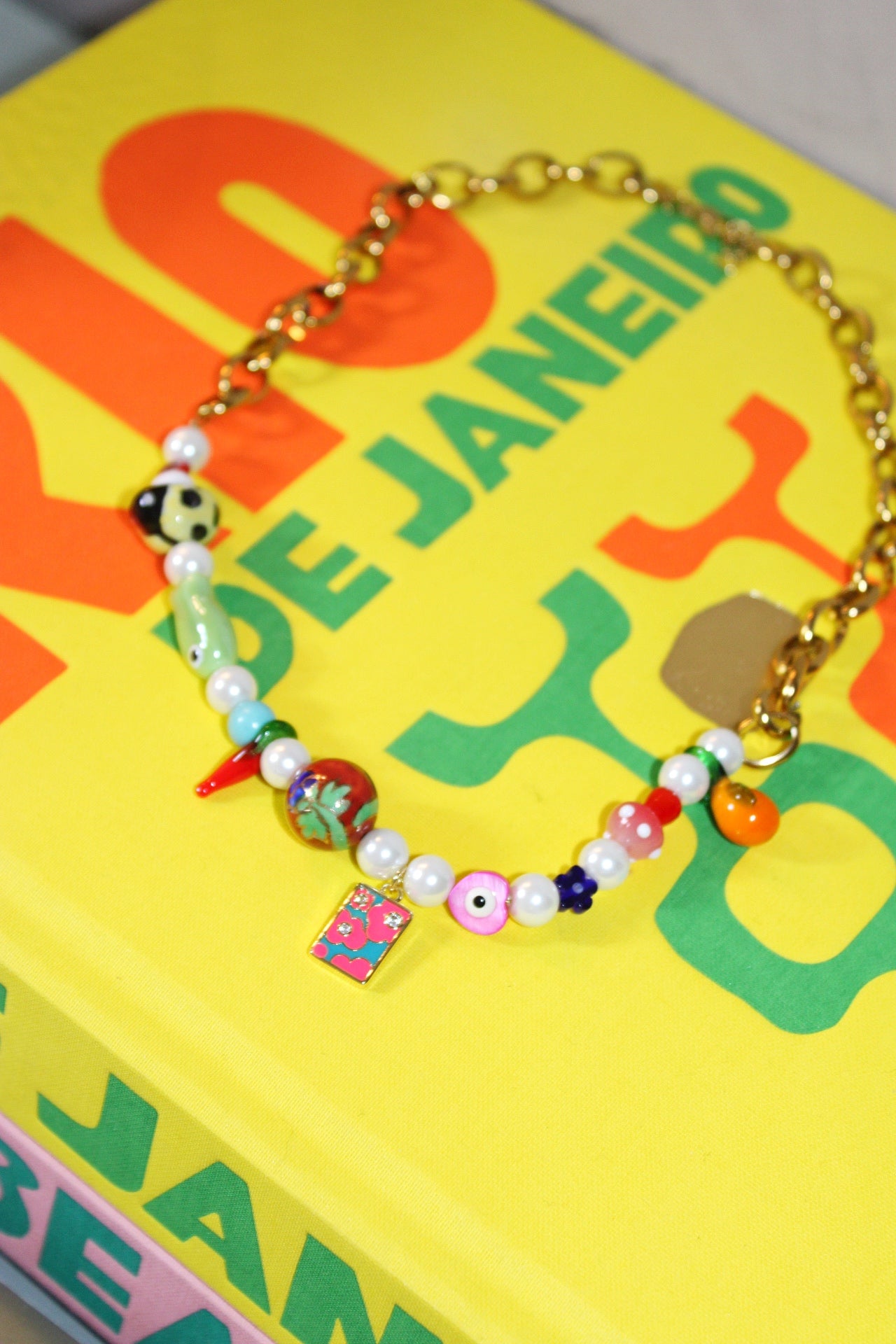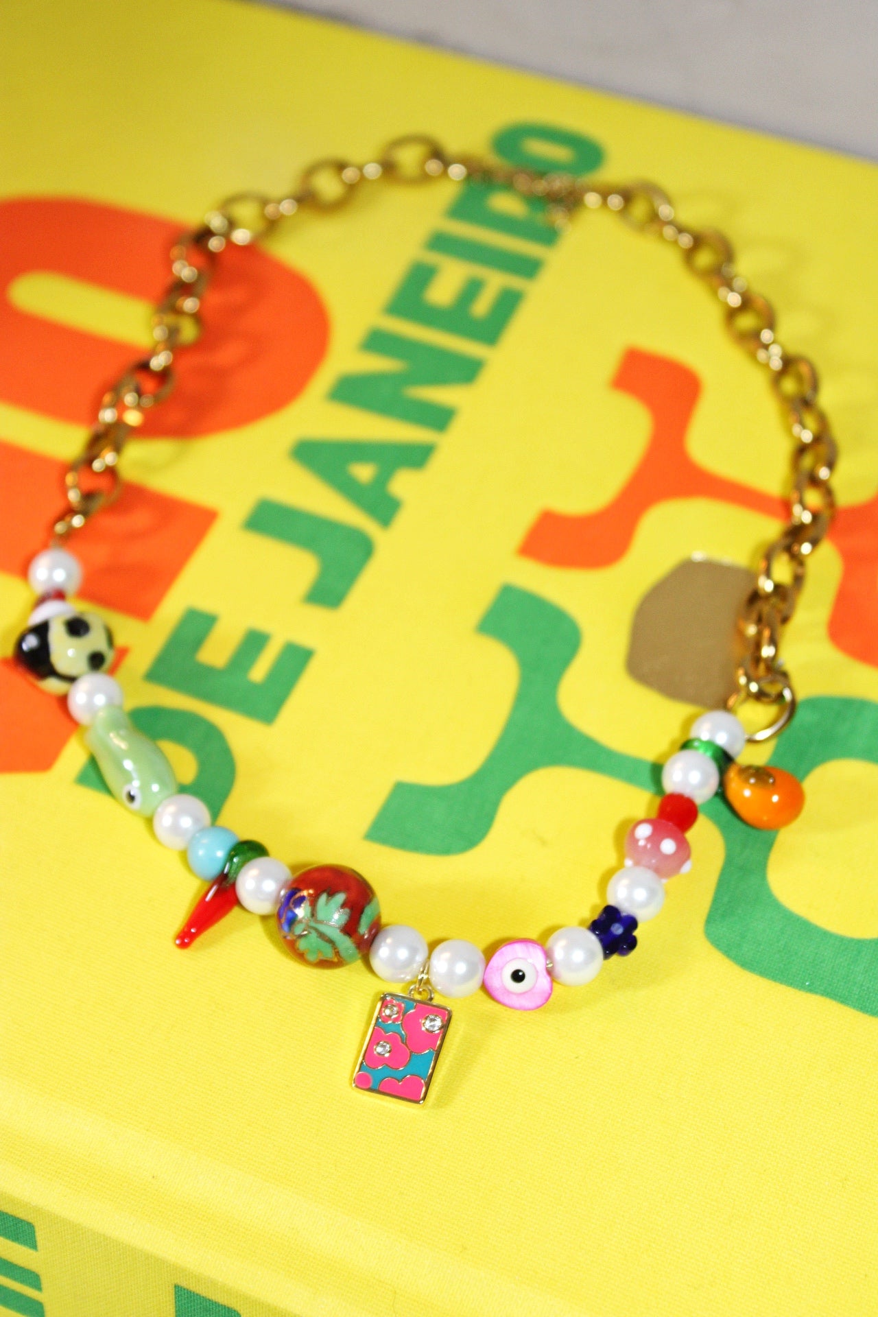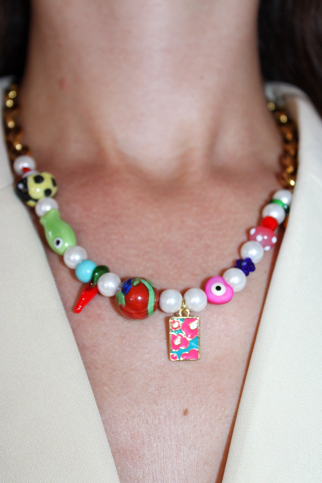 Ce collier en acier inoxydable doré et mélange de perles colorés est l'accessoire parfait pour sublimer toutes vos tenues. Conçu avec soin, il combine à la fois robustesse et légèreté, offrant une brillance durable sans ternir. La breloque délicate, au design unique et raffiné, ajoute une touche de fantaisie et d'élégance à ce bijou tendance. Idéal pour un look casual ou habillé, ce collier fantaisie s’adapte à toutes les occasions, du quotidien aux soirées spéciales. Son matériau en acier inoxydable garantit une longue durée de vie et une résistance aux égratignures et à l'humidité. Offrez à votre style une note de sophistication avec ce bijou moderne et intemporel.