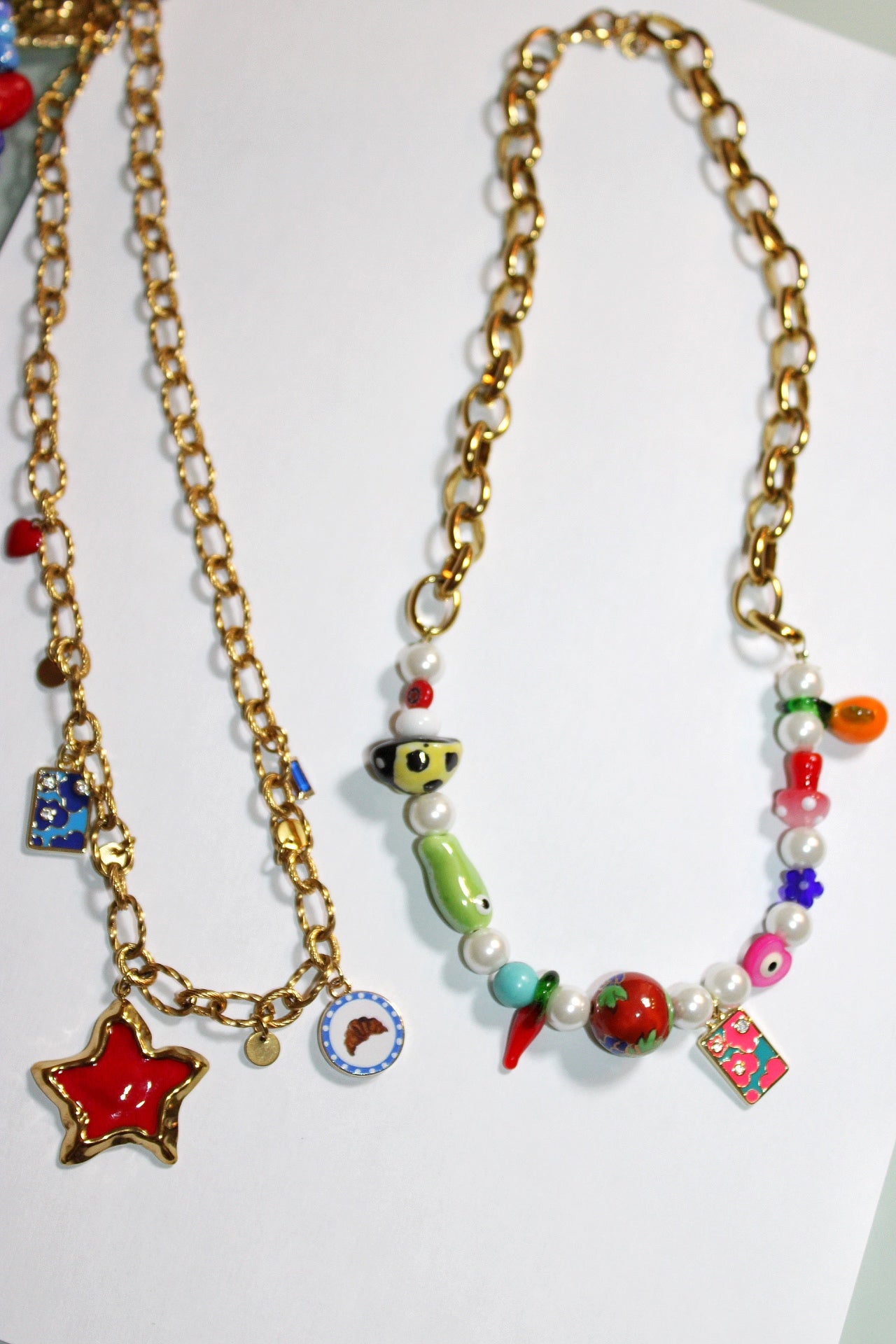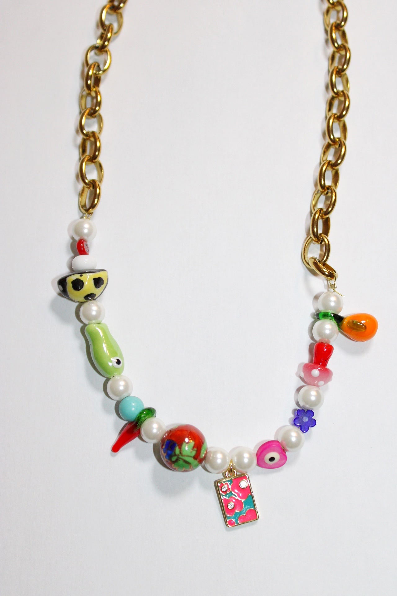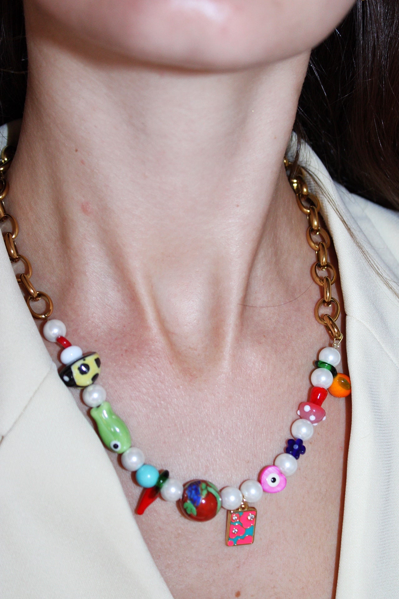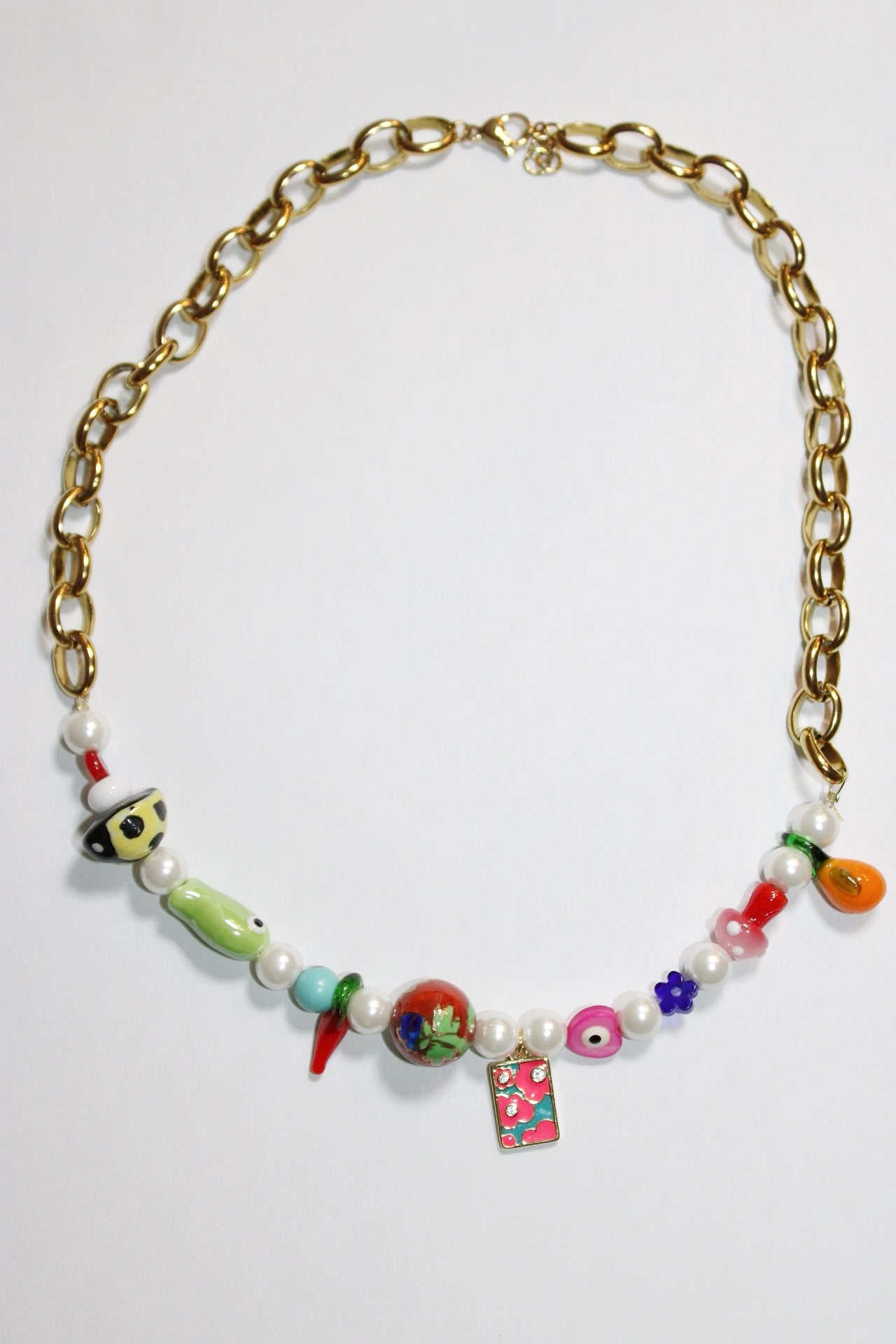 Ce collier en acier inoxydable doré et mélange de perles colorés est l'accessoire parfait pour sublimer toutes vos tenues. Conçu avec soin, il combine à la fois robustesse et légèreté, offrant une brillance durable sans ternir. La breloque délicate, au design unique et raffiné, ajoute une touche de fantaisie et d'élégance à ce bijou tendance. Idéal pour un look casual ou habillé, ce collier fantaisie s’adapte à toutes les occasions, du quotidien aux soirées spéciales. Son matériau en acier inoxydable garantit une longue durée de vie et une résistance aux égratignures et à l'humidité. Offrez à votre style une note de sophistication avec ce bijou moderne et intemporel.