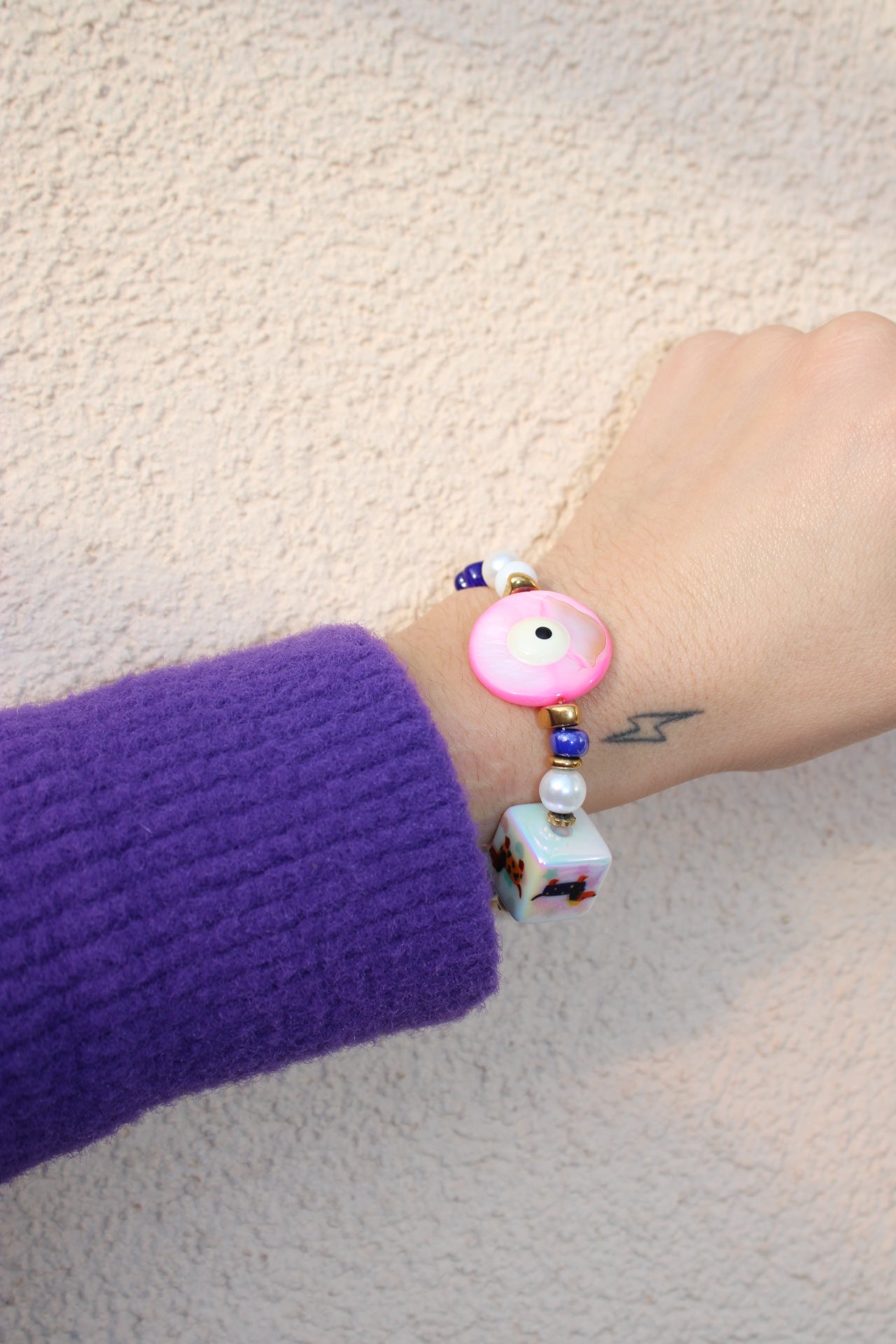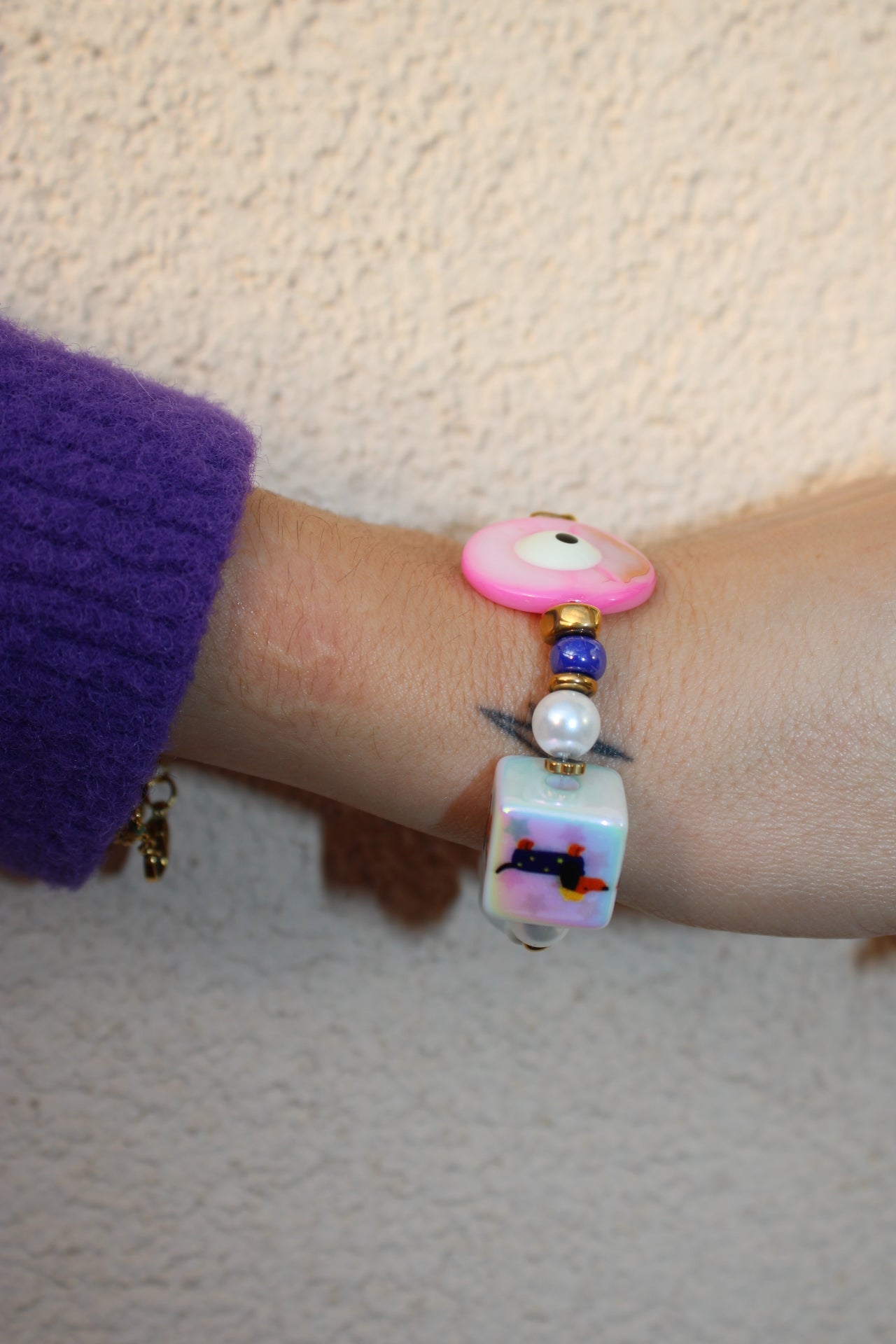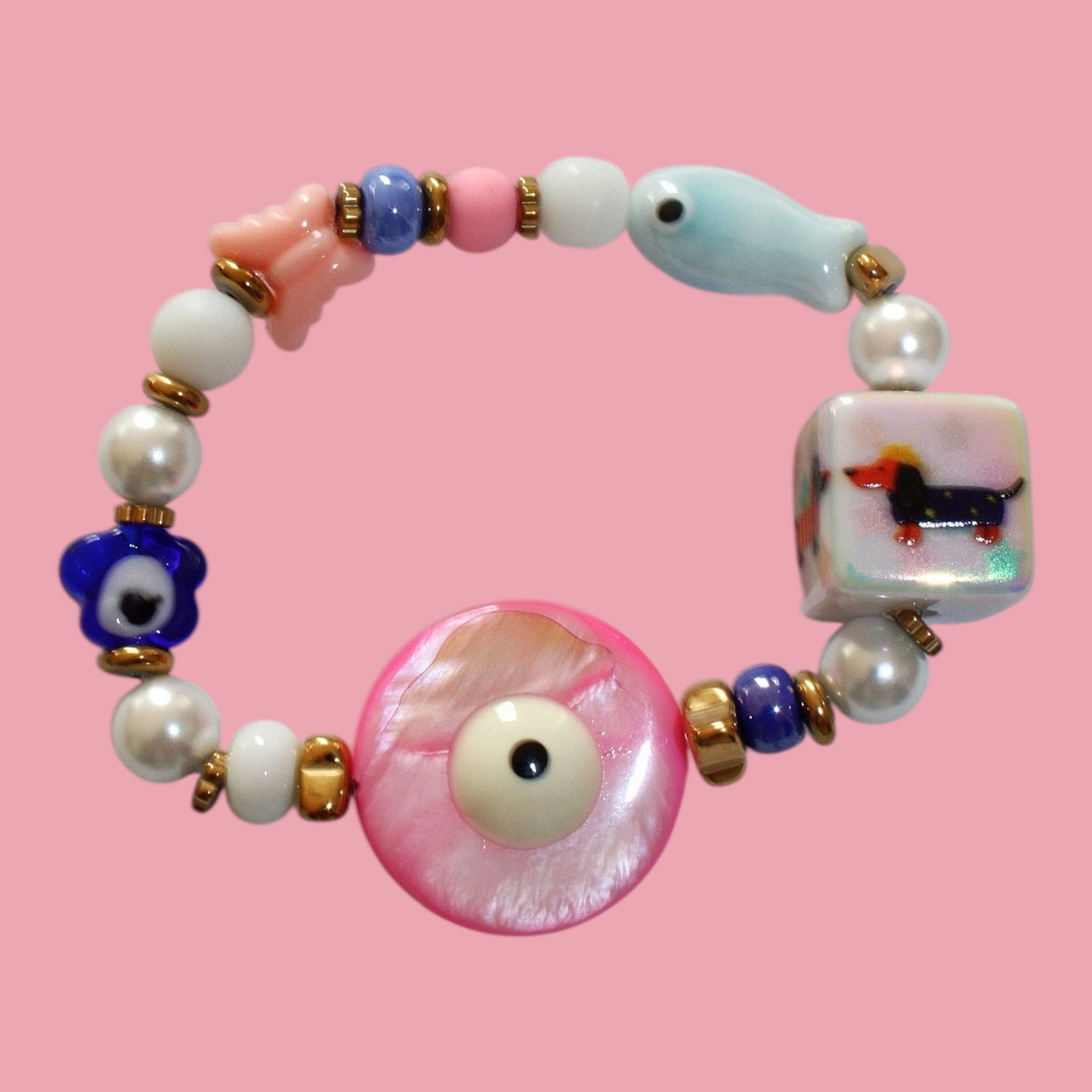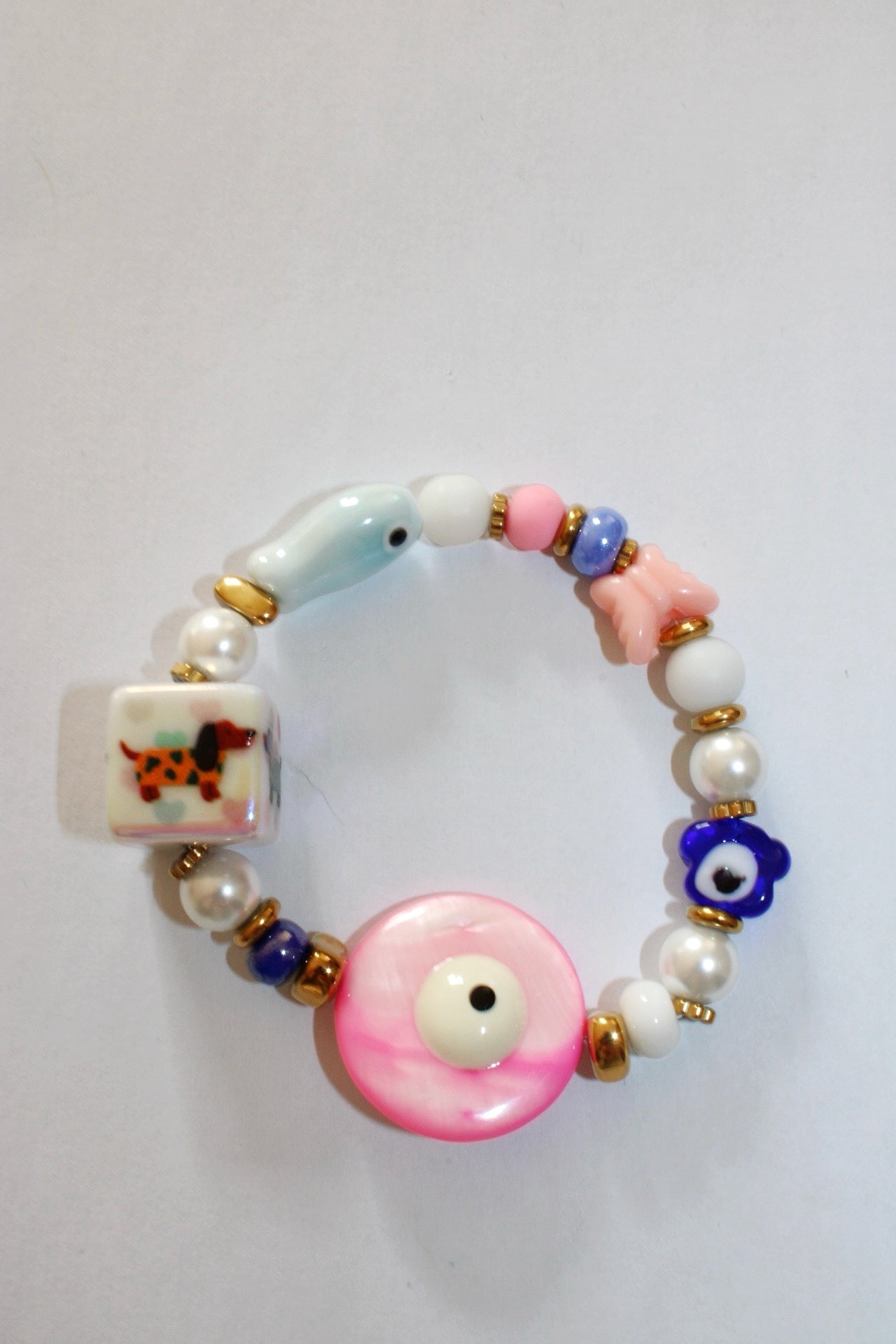 Craquez pour ce bracelet fantaisie mélange de perles de orné de jolis motifs et couleurs, pour une touche de fraîcheur et de poésie au poignet. Avec ses couleurs douces et vibrantes, ce bijou au style original et coloré est parfait pour égayer vos tenues, été comme hiver.