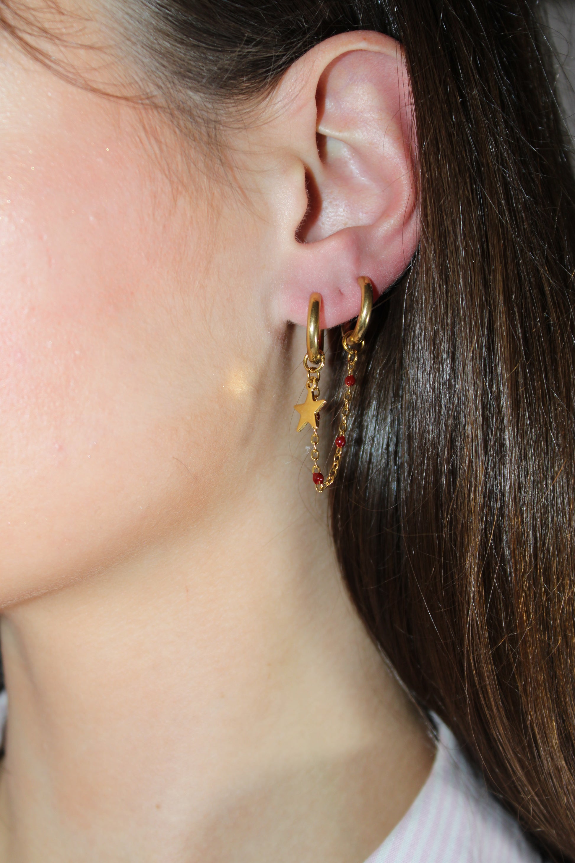 Ces boucles d'oreilles en acier inoxydable allient élégance et originalité. Leur design en chaînettes dorées est rehaussé de touches multicolores, apportant une note dynamique et festive à votre look. Légères et confortables, elles se portent aussi bien au quotidien que lors d'occasions spéciales. Un bijou fantaisie parfait pour ajouter une touche de couleur et de modernité à votre style !
