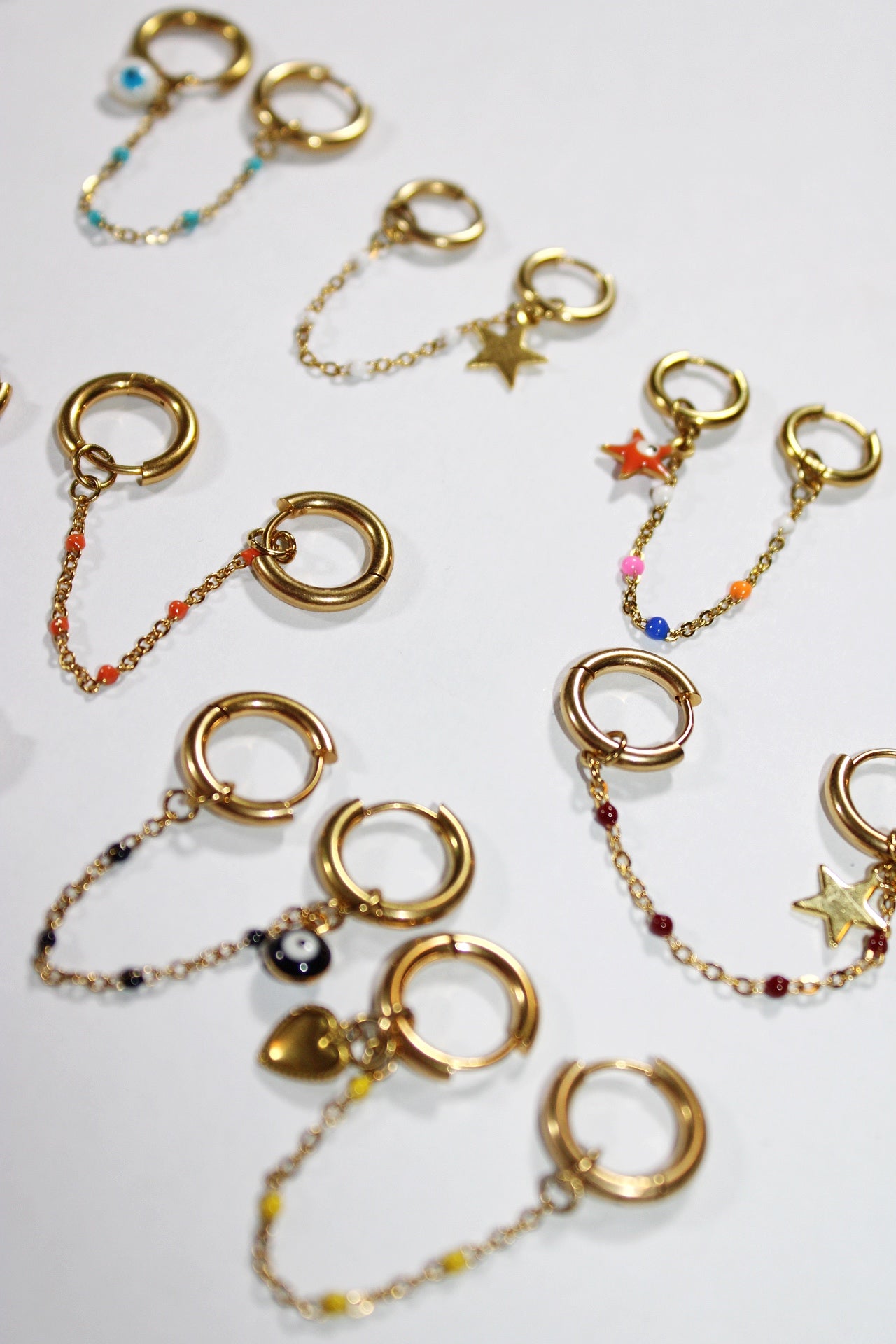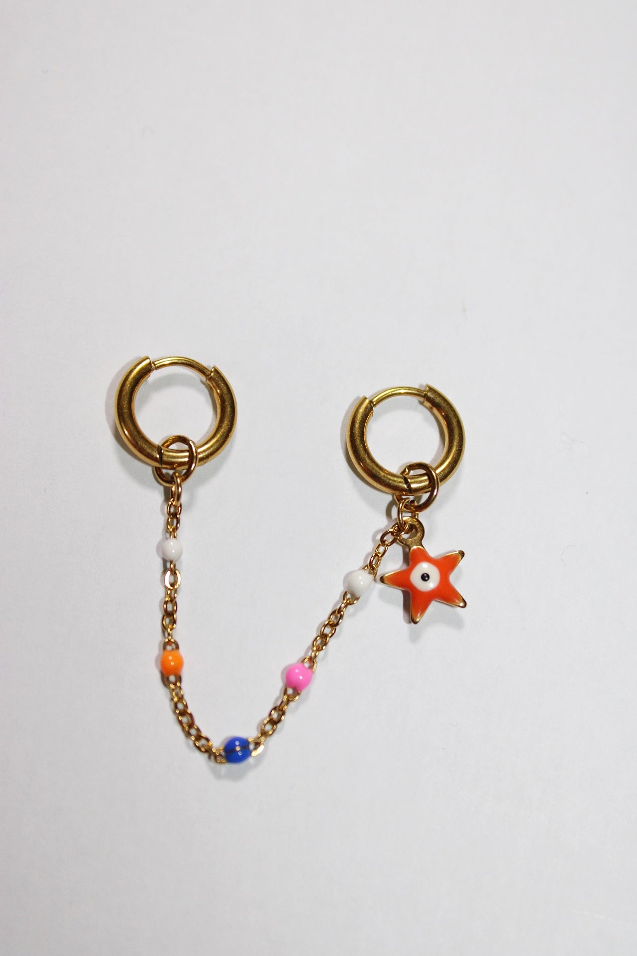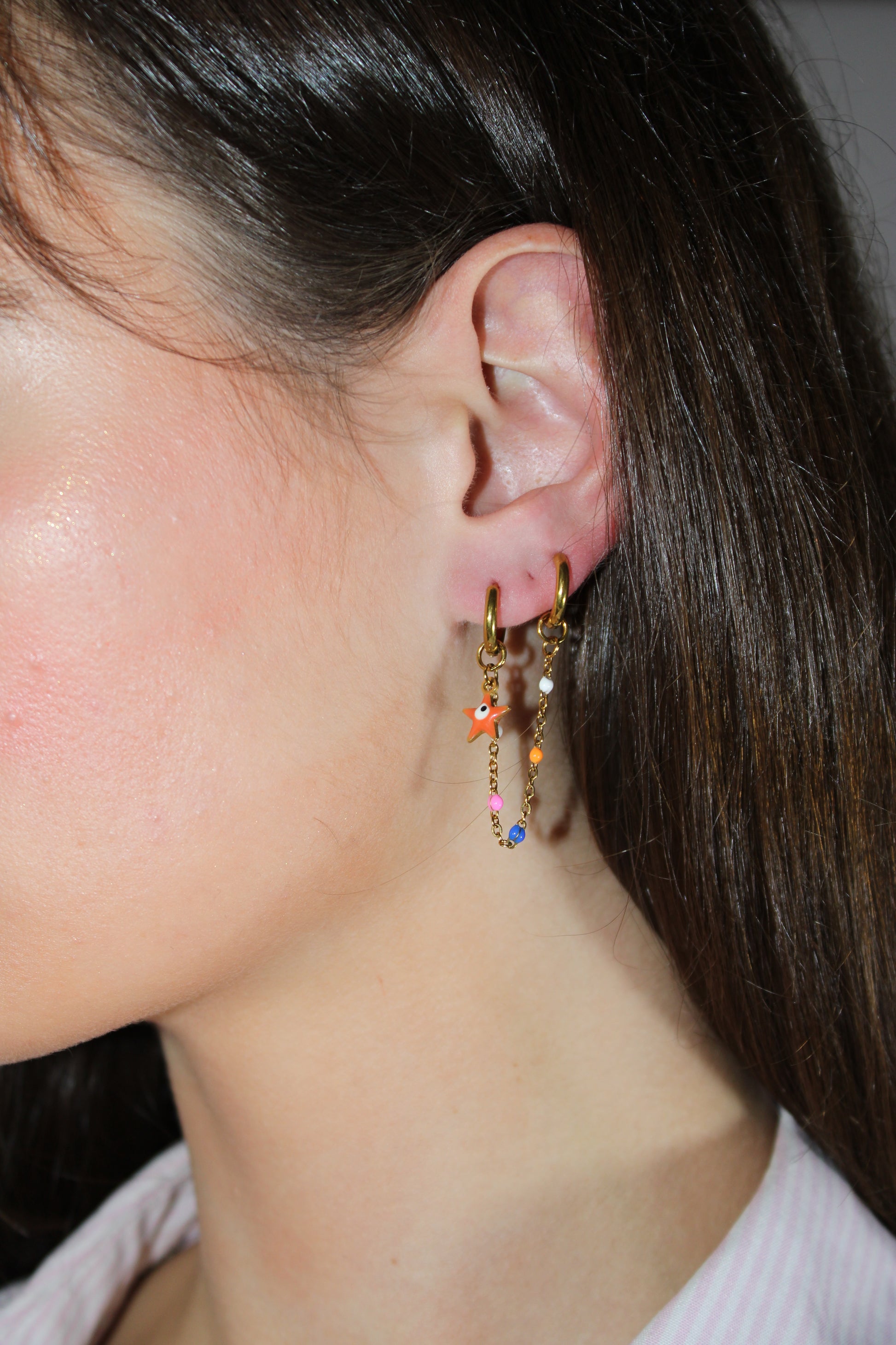 Ces boucles d'oreilles en acier inoxydable allient élégance et originalité. Leur design en chaînettes dorées est rehaussé de touches multicolores, apportant une note dynamique et festive à votre look. Légères et confortables, elles se portent aussi bien au quotidien que lors d'occasions spéciales. Un bijou fantaisie parfait pour ajouter une touche de couleur et de modernité à votre style !