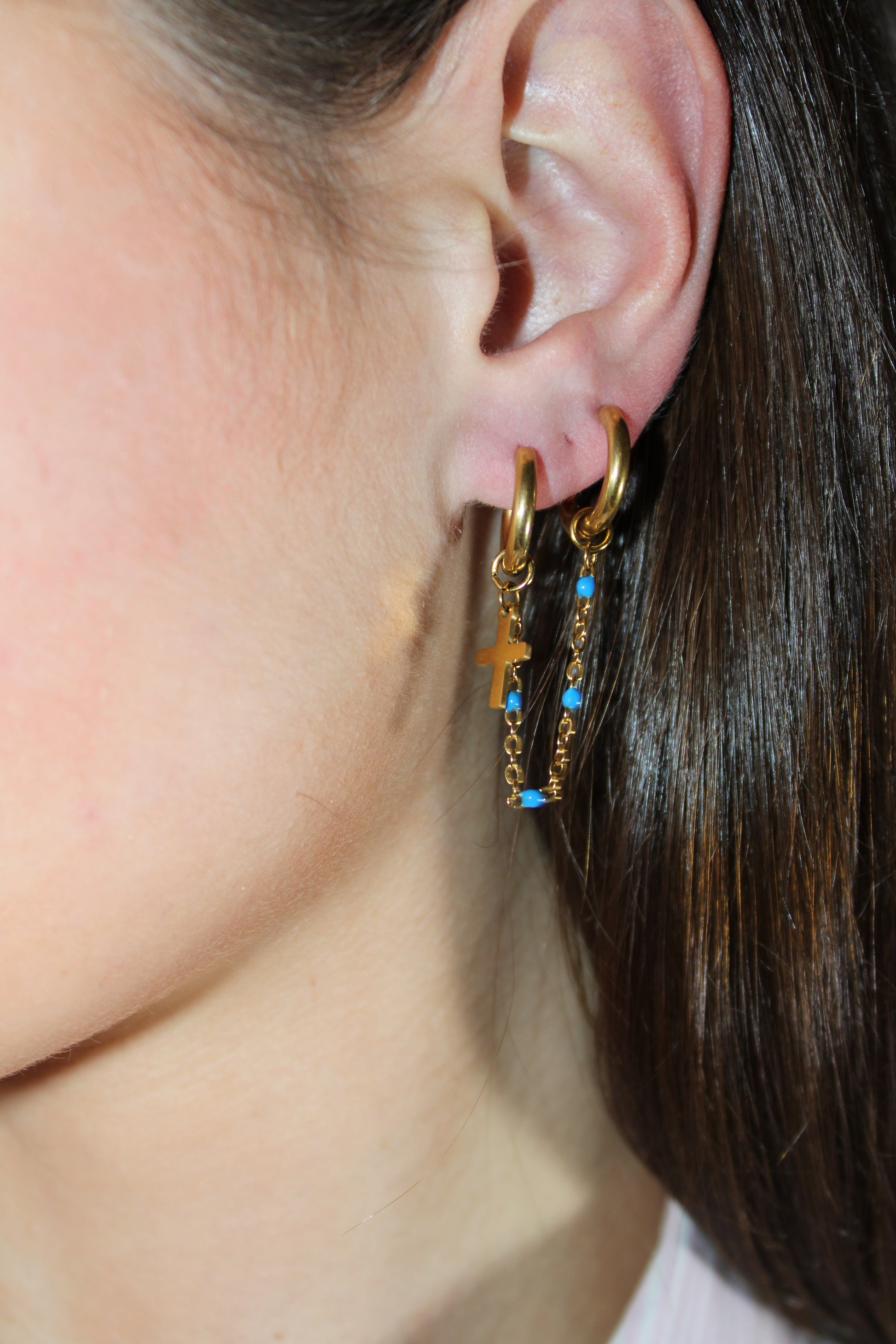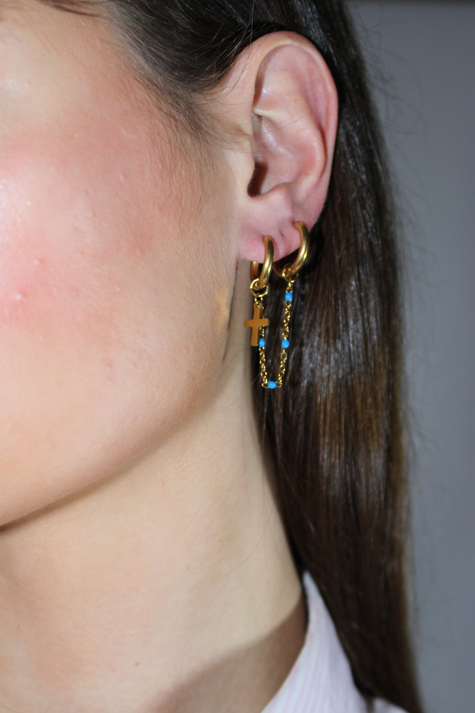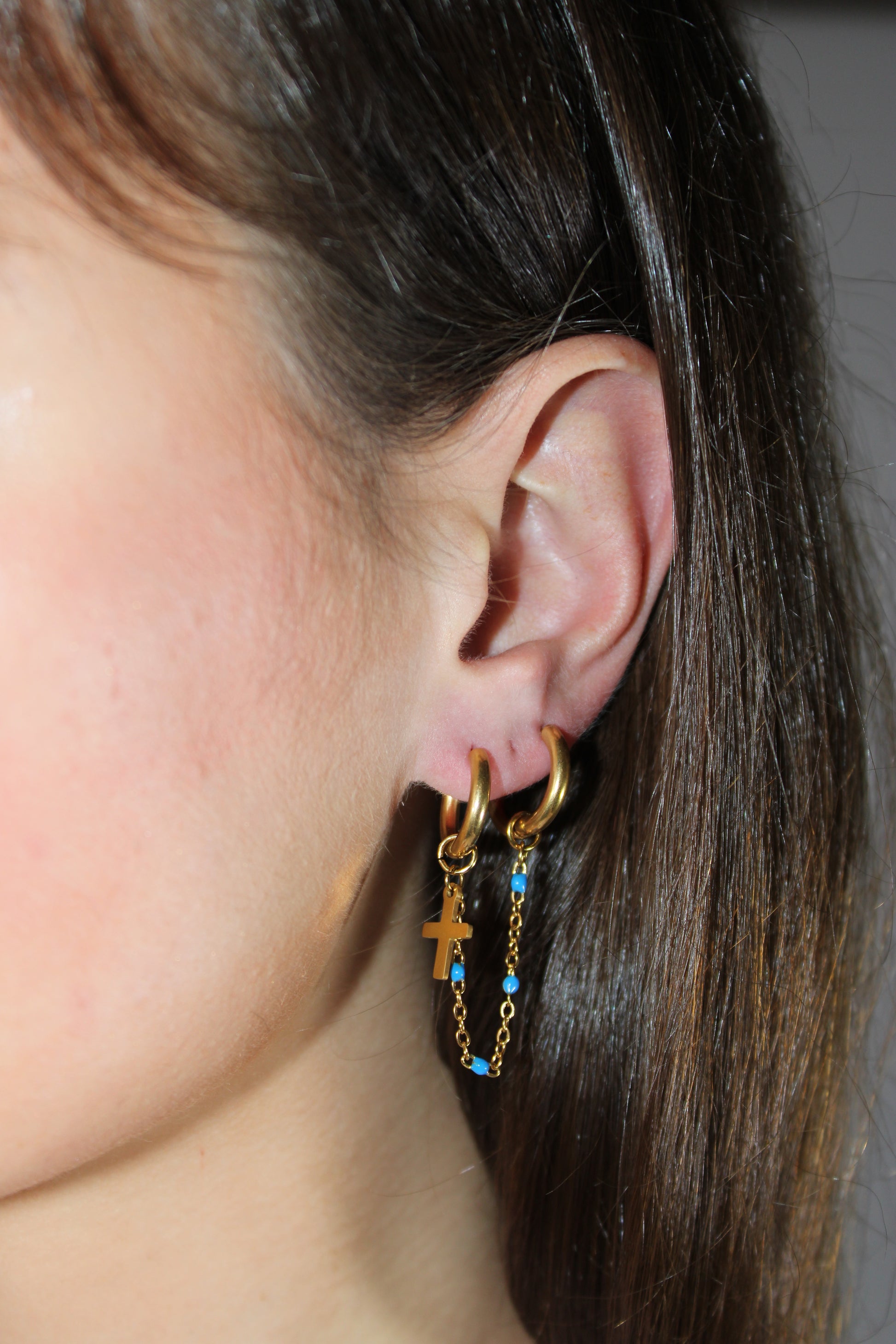 Ces boucles d'oreilles en acier inoxydable allient élégance et originalité. Leur design en chaînettes dorées est rehaussé de touches multicolores, apportant une note dynamique et festive à votre look. Légères et confortables, elles se portent aussi bien au quotidien que lors d'occasions spéciales. Un bijou fantaisie parfait pour ajouter une touche de couleur et de modernité à votre style !