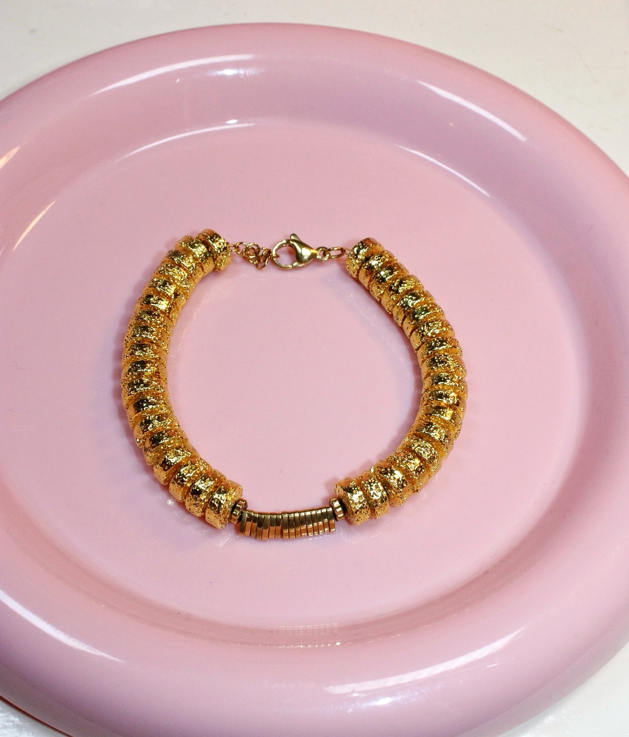 Bracelet fantaisie en perles heishicolorées, sublimé par de délicates perles en hématite dorée pour une touche lumineuse et moderne. Ce bracelet bohème au style vibrant et tendance apporte une note estivale et joyeuse à toutes les tenues. Léger, confortable et plein de charme, il est idéal comme bijou fantaisie, bracelet coloré, ou accessoire bohèmepour femme. Un bracelet heishi unique, parfait pour un look décontracté, chic et ensoleillé.
