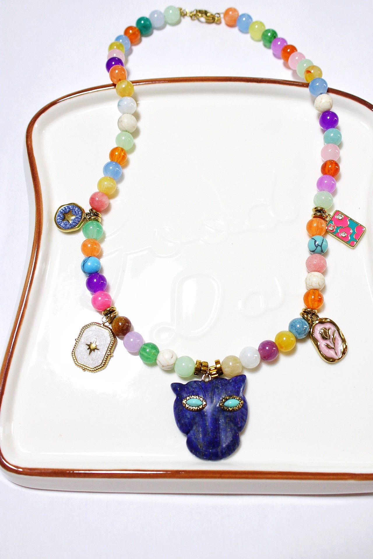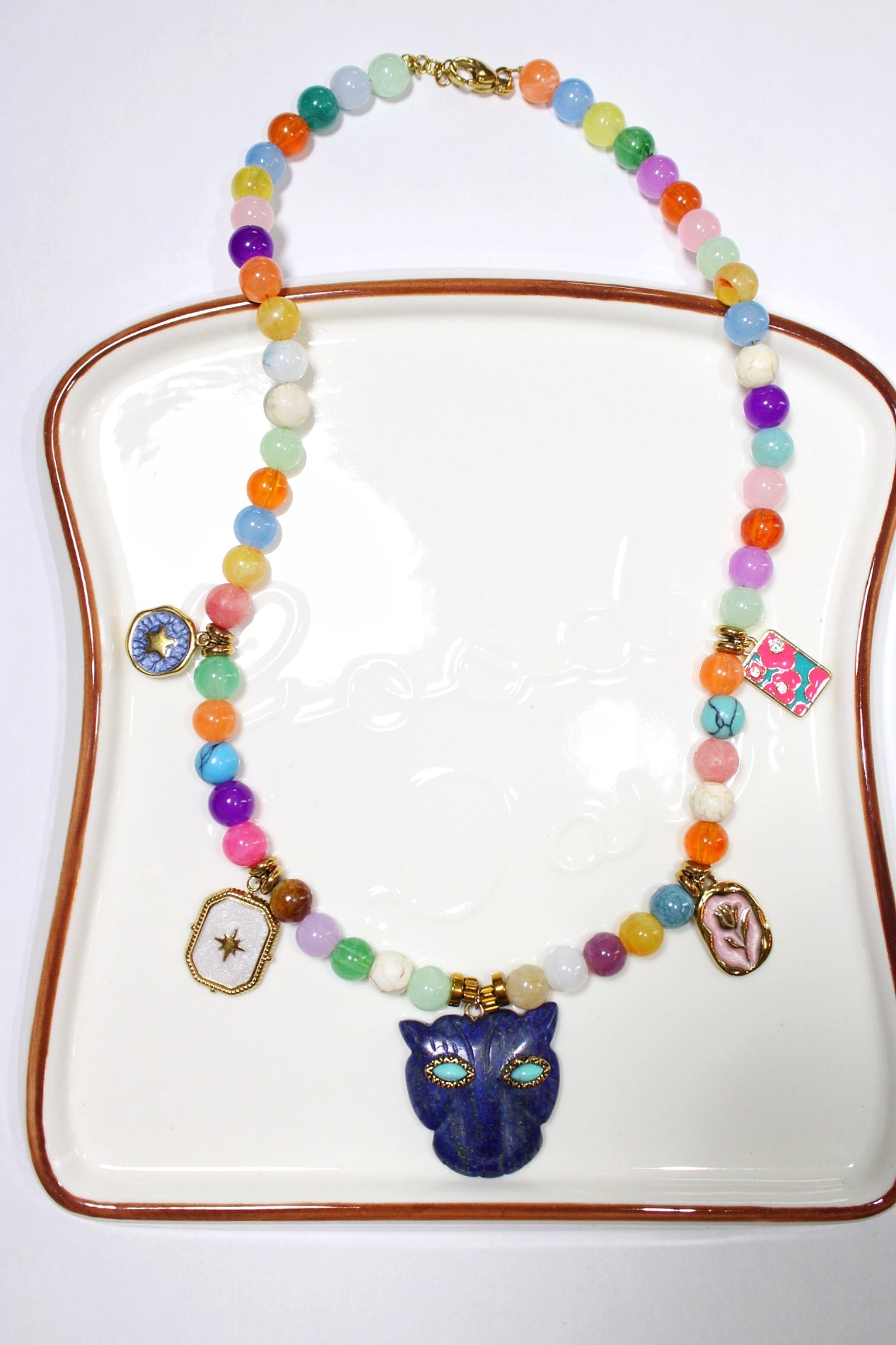 Apportez une touche de couleur et de modernité à votre tenue avec ce collier multicolore en perles de résine, soigneusement assemblé pour un style à la fois tendance, joyeux et original. Orné de breloques en acier inoxydable, il allie esthétique et durabilité. Léger et confortable à porter, ce bijou fantaisie s’adapte aussi bien à un look casual qu’à une tenue plus affirmée. Résistant à l’oxydation, l’acier inoxydable garantit une brillance durable et une excellente tenue dans le temps. Un accessoire idéal pour sublimer votre style ou offrir un cadeau coloré et moderne.