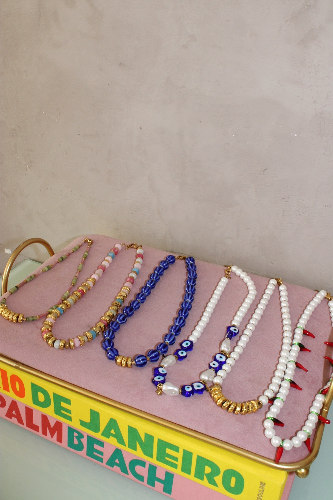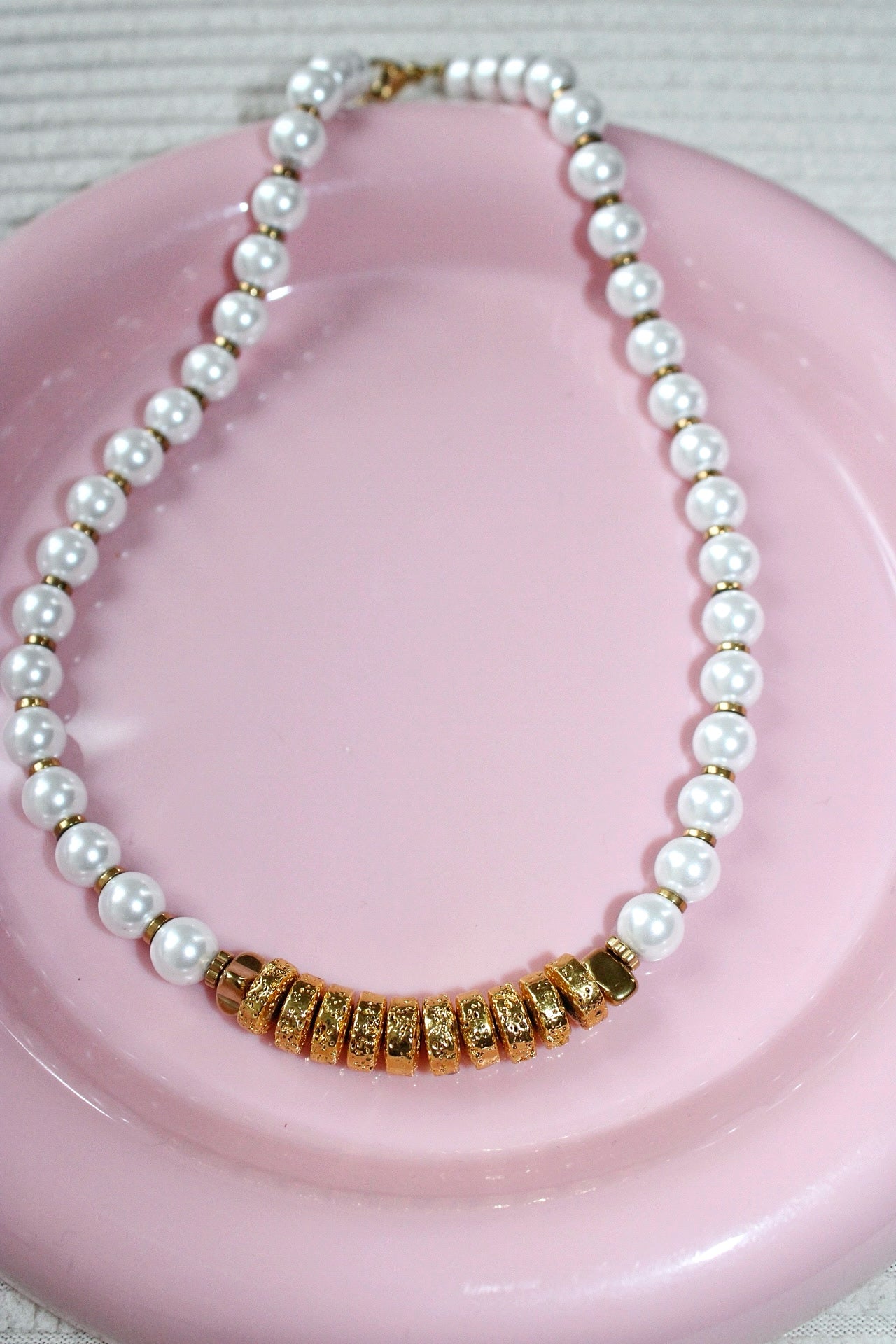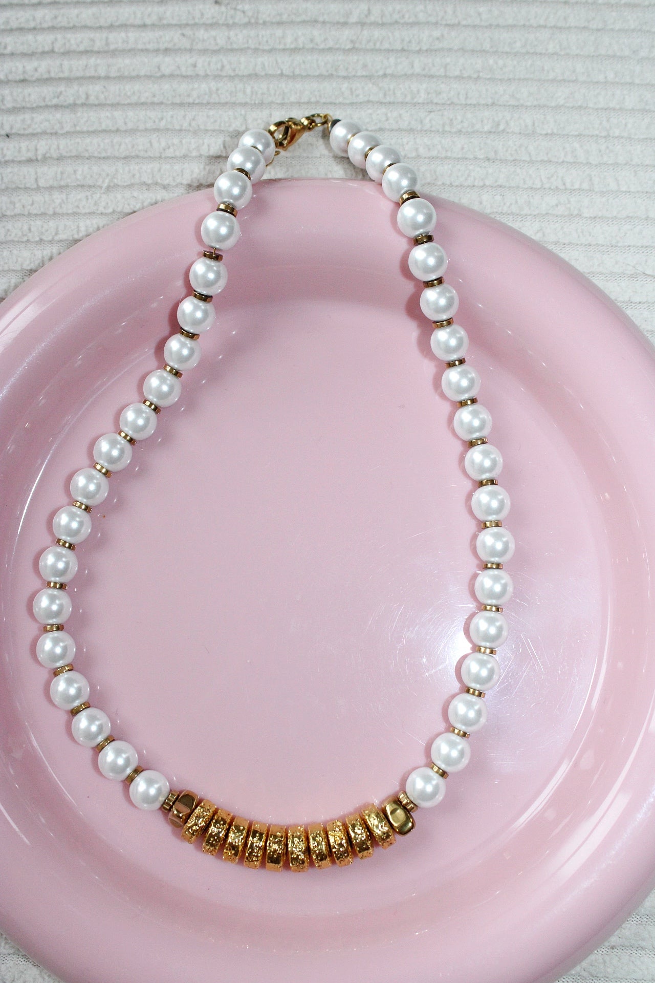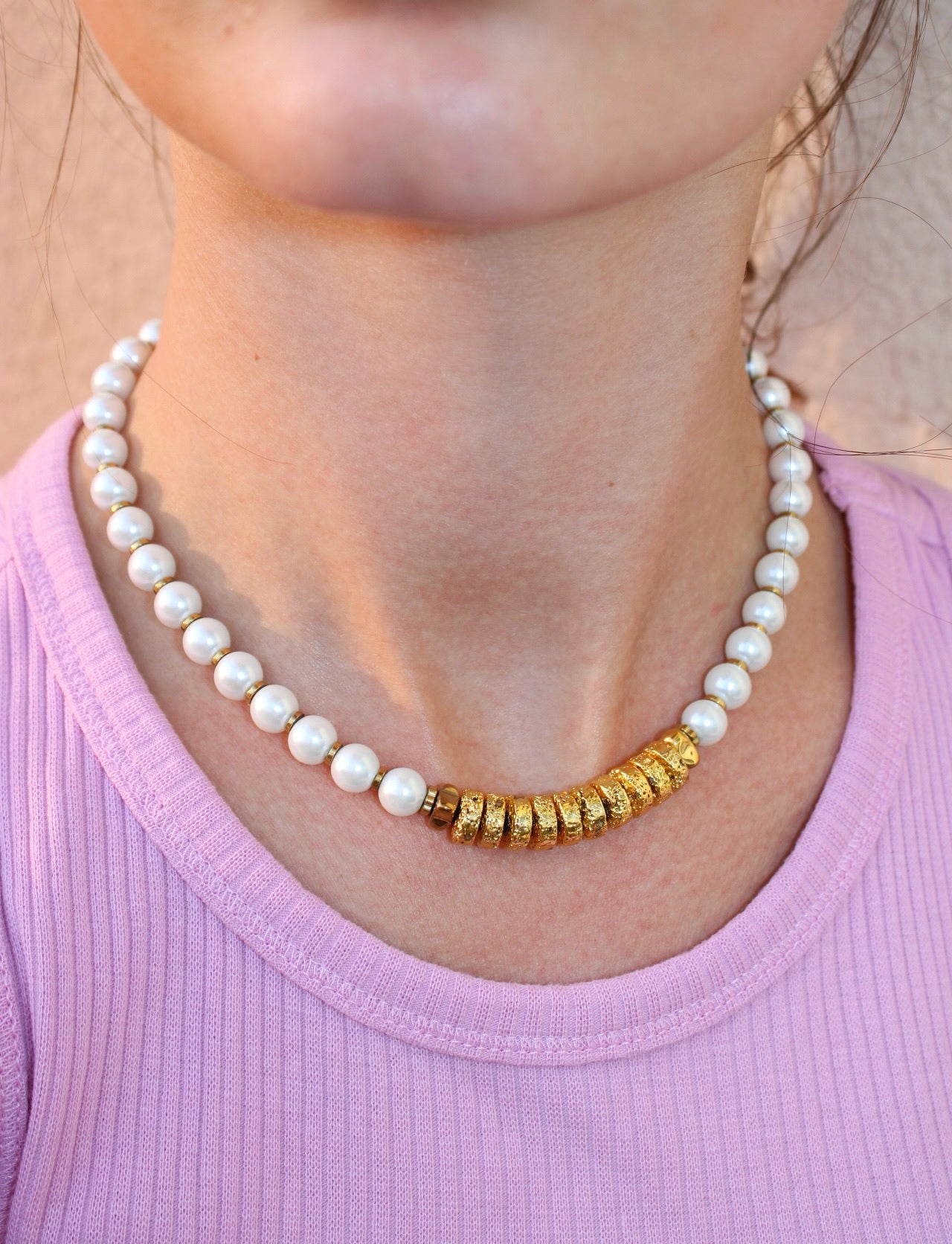 Collier fantaisie élégant composé de perles nacrées lumineuses associées à de délicates hématites dorées pour une touche chic et moderne. Ce collier en perles nacrées se distingue par son style raffiné, parfait pour apporter de l’éclat et de la féminité à toutes les tenues. Léger, tendance et facile à porter, il est idéal pour les amatrices de bijoux fantaisie, d’accessoires dorés et de créations artisanales. Un collier perles nacrées et hématite dorée indispensable pour compléter un look élégant ou offrir en cadeau.