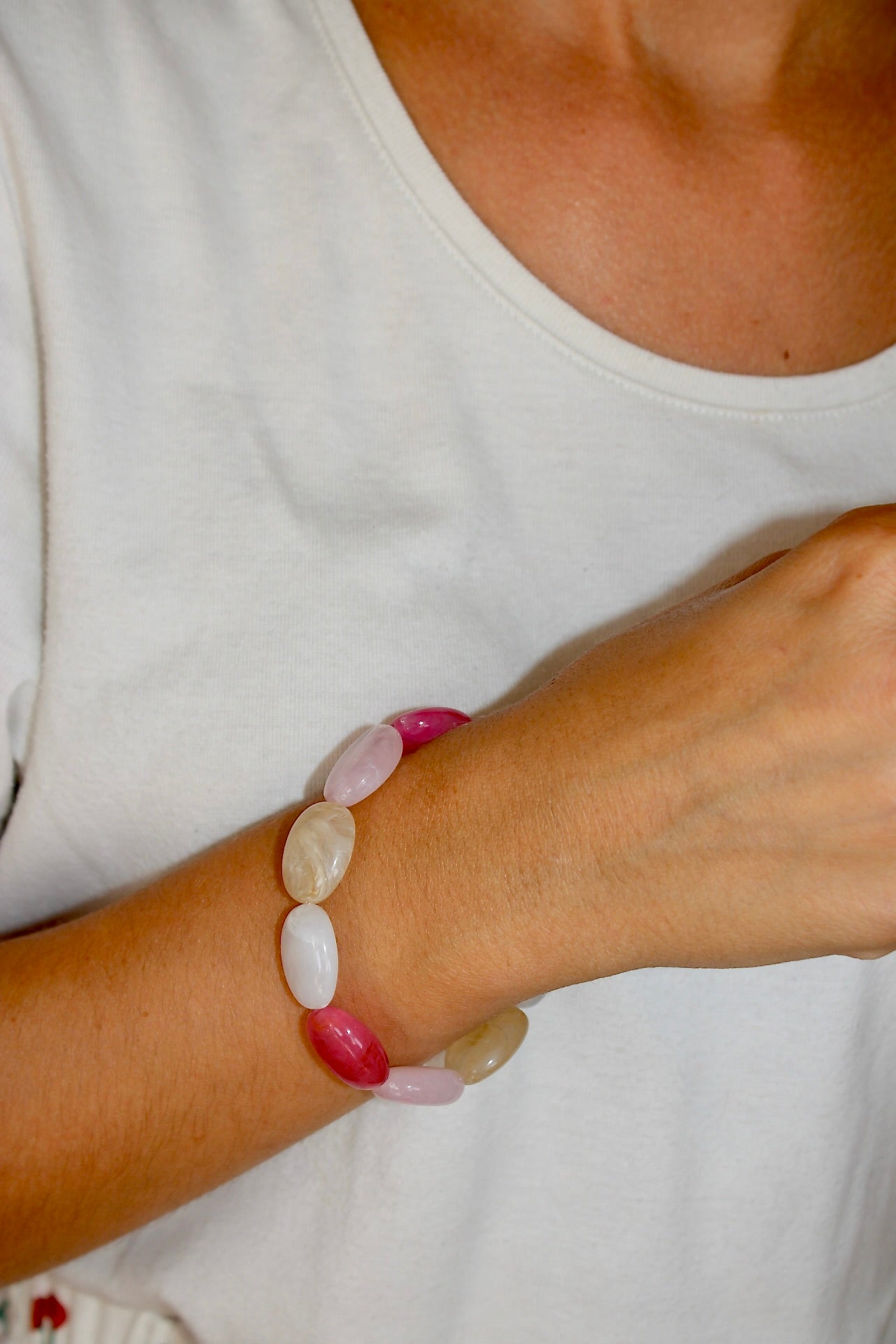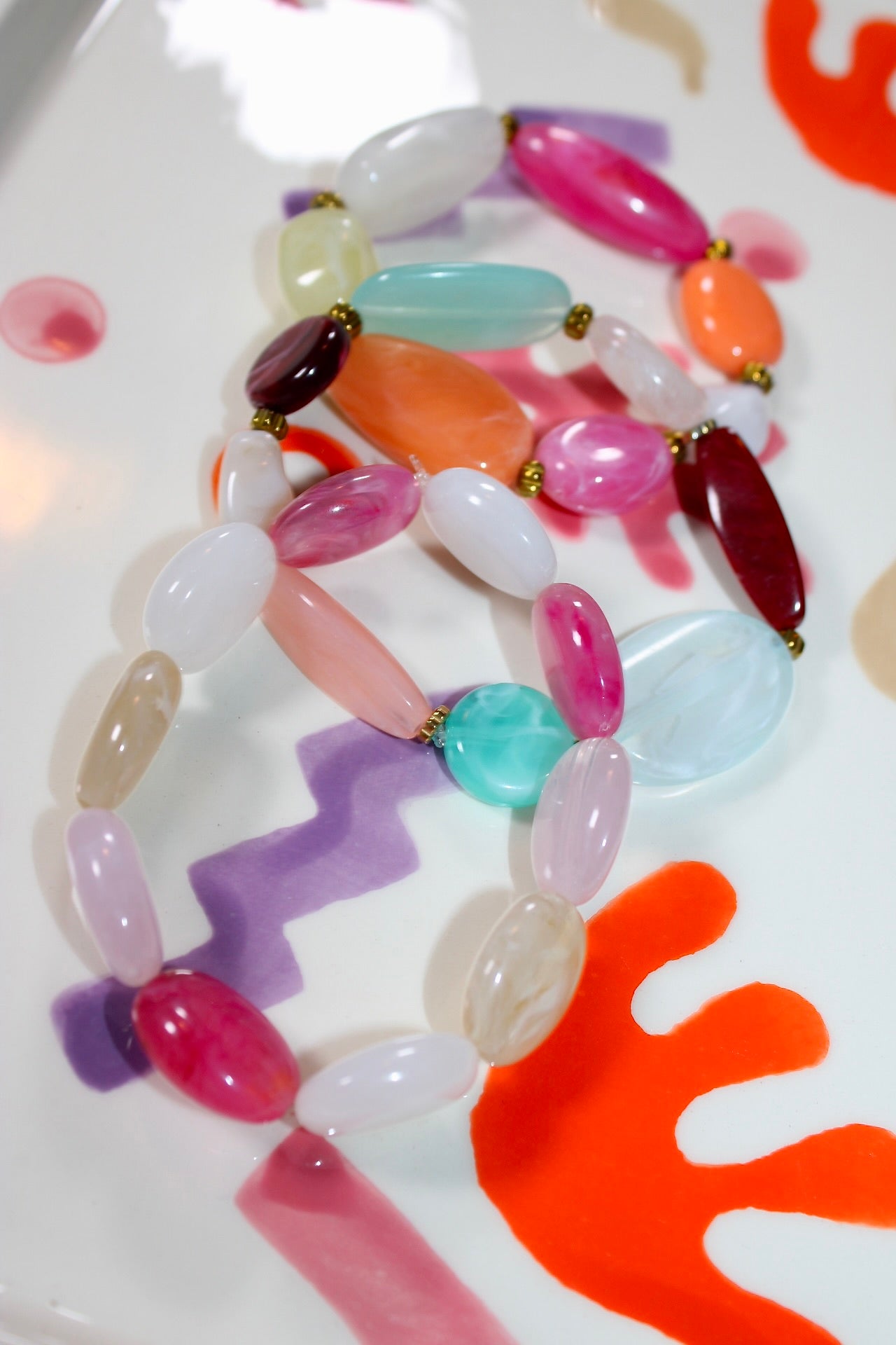Ajoutez une explosion de couleurs à votre poignet avec ce bracelet en perles acrylique multicolores, un bijou fantaisie plein de peps ! Léger, confortable et résolument tendance, il se porte seul pour une touche pop ou en accumulation pour un look bohème et vitaminé.