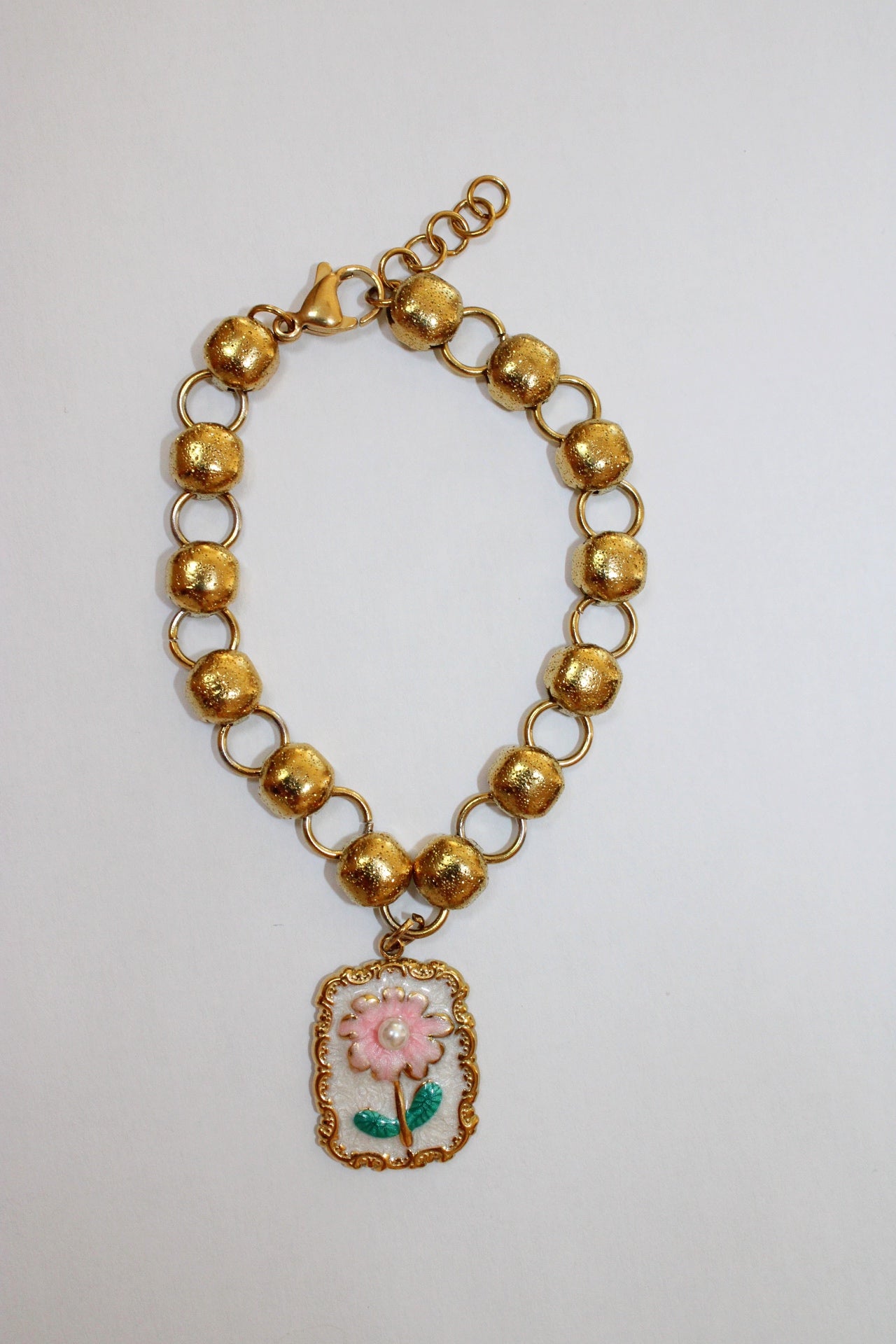 Craquez pour ce bracelet tendance en chaîne dorée fabriqué en acier inoxydable, orné d'une breloque délicatequi apporte une touche de fantaisie chic.