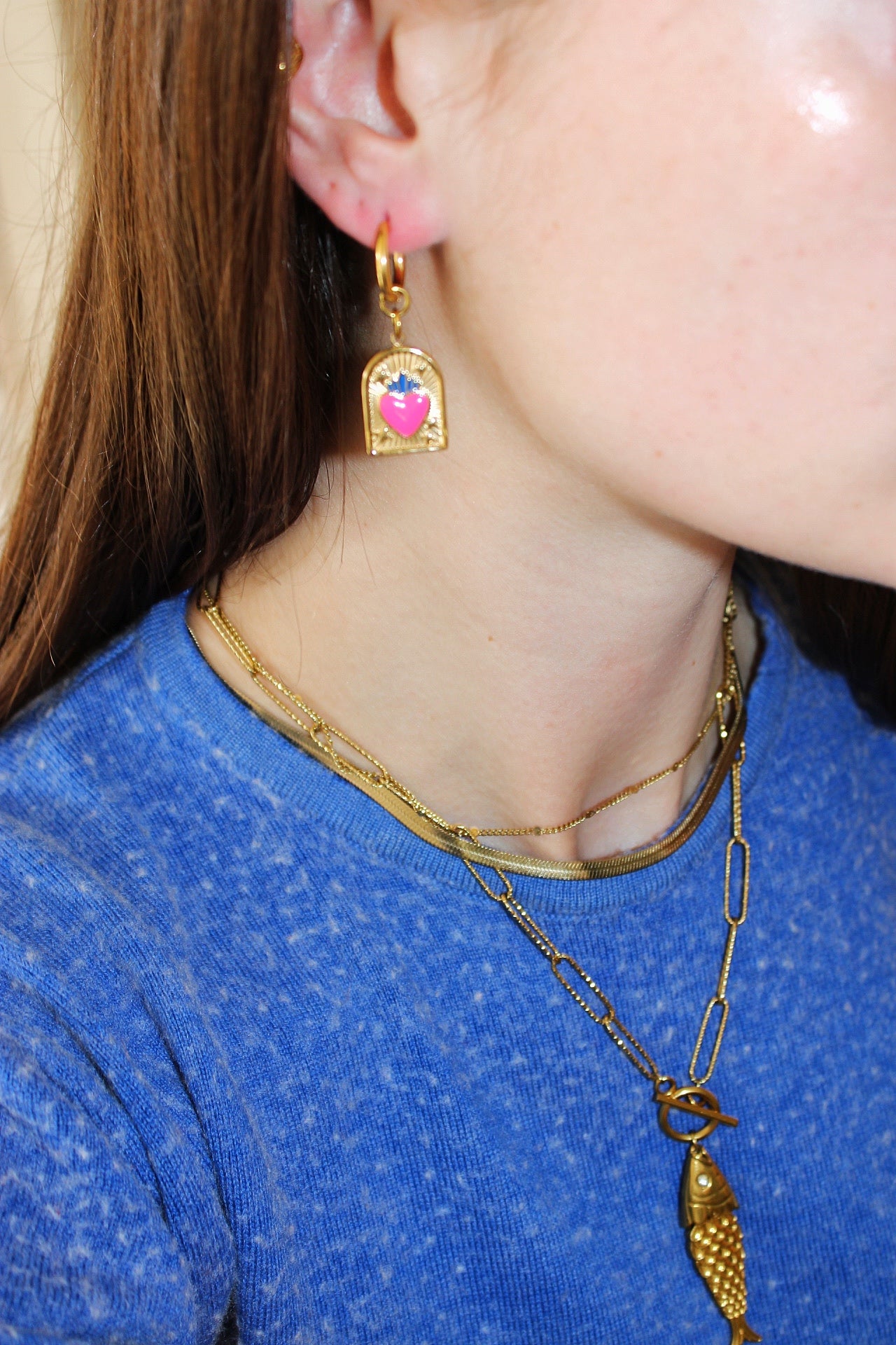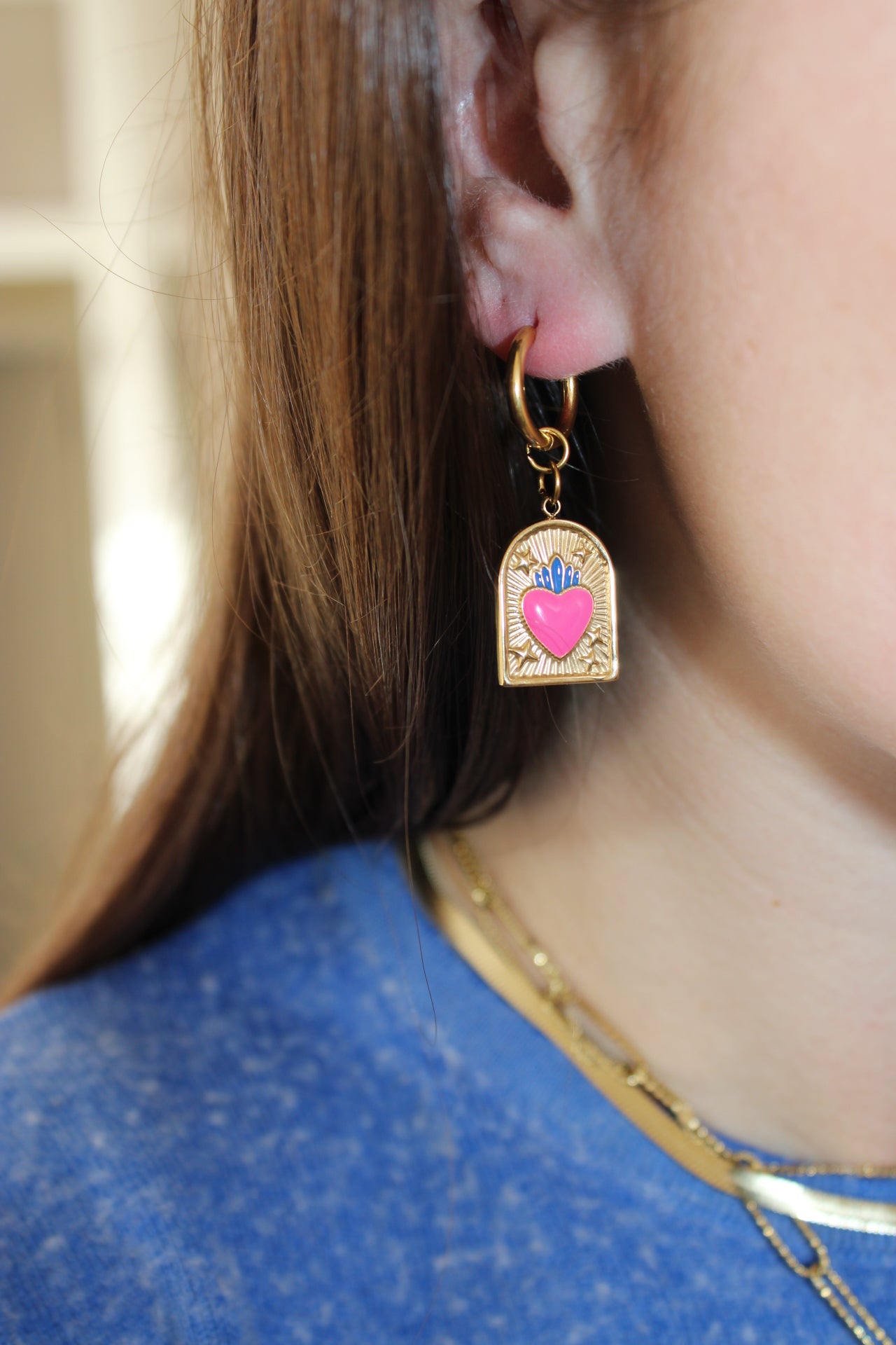 Ces boucles d'oreilles créoles en acier inoxydable doré allient élégance et légèreté. Leur design raffiné met en valeur des breloques délicatement suspendus au centre de chaque créole, apportant une touche de féminité et de liberté. La finition dorée brillante offre une allure moderne et sophistiquée, parfaite pour sublimer toutes vos tenues, que ce soit au quotidien ou pour des occasions spéciales. Résistantes et intemporelles, ces boucles d'oreilles sont un accessoire essentiel pour un look chic et original.