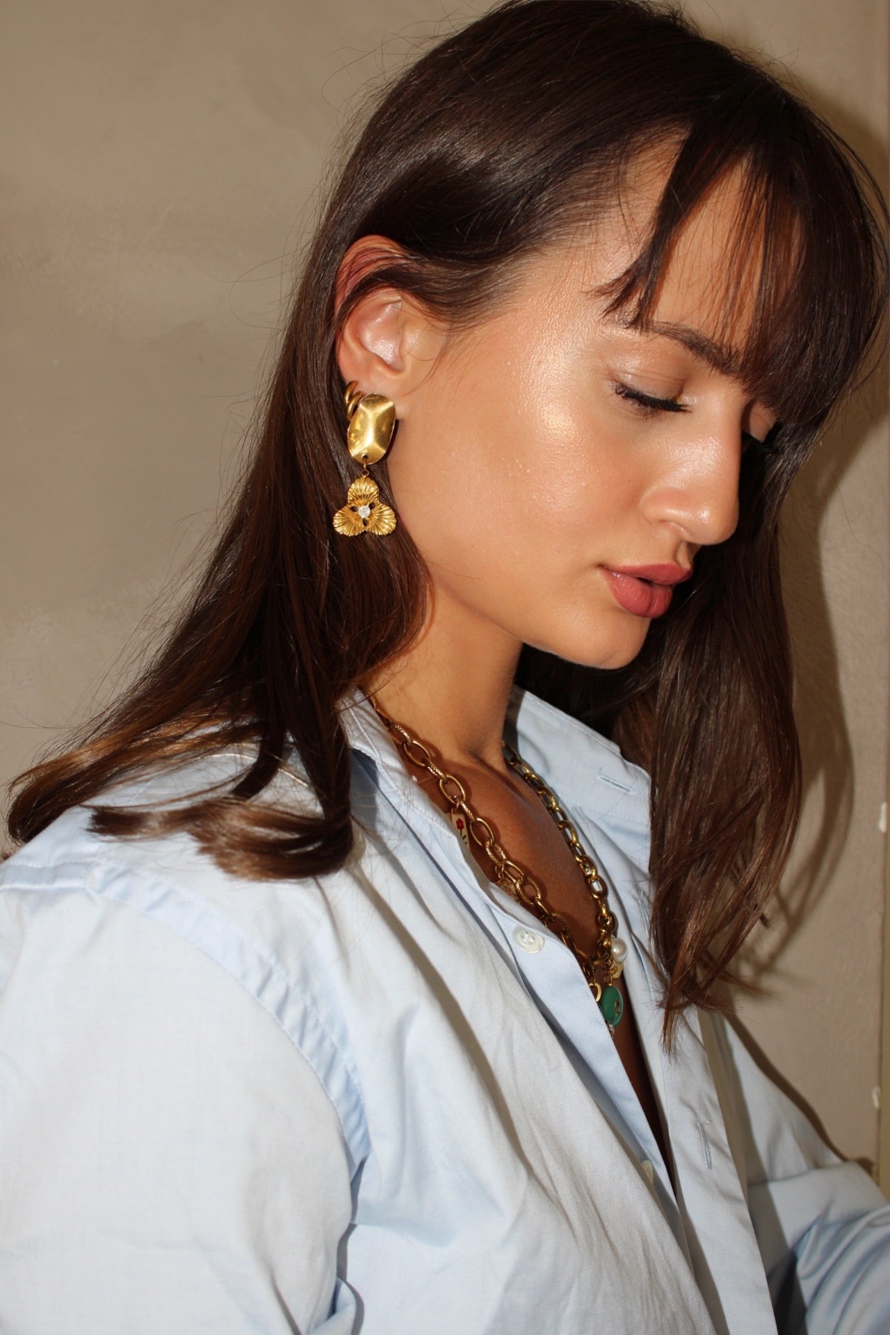 Ces boucles d'oreilles pendantes en acier inoxydable doré allient élégance et légèreté. Leur design raffiné met en valeur une chaînette en acier inoxydable délicatement suspendus par un strass au centre de chaque créole, apportant une touche de féminité et de liberté. La finition dorée brillante offre une allure moderne et sophistiquée, parfaite pour sublimer toutes vos tenues, que ce soit au quotidien ou pour des occasions spéciales. Résistantes et intemporelles, ces boucles d'oreilles sont un accessoire essentiel pour un look chic et original.