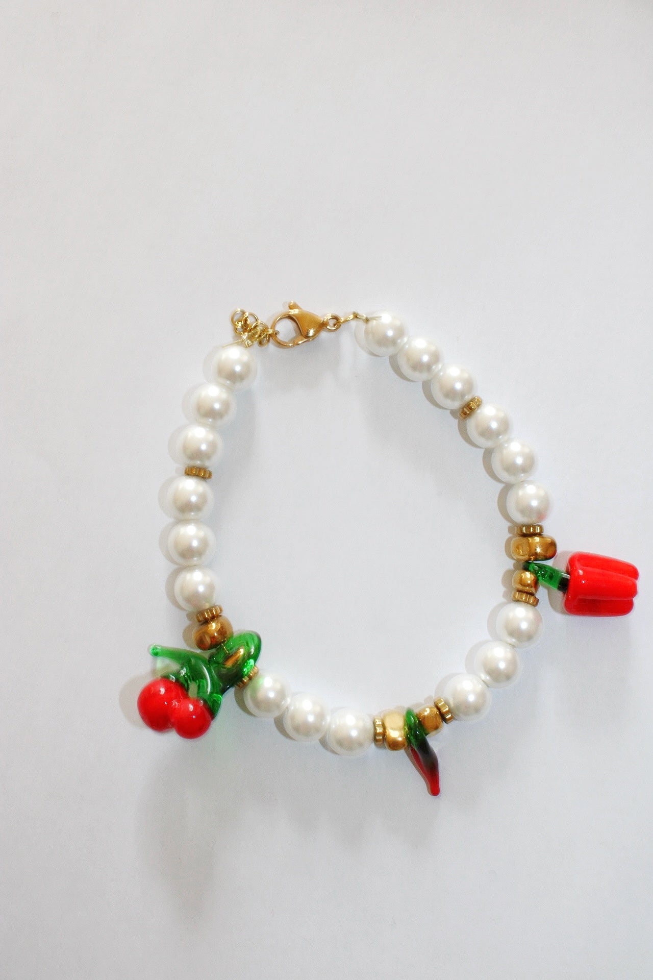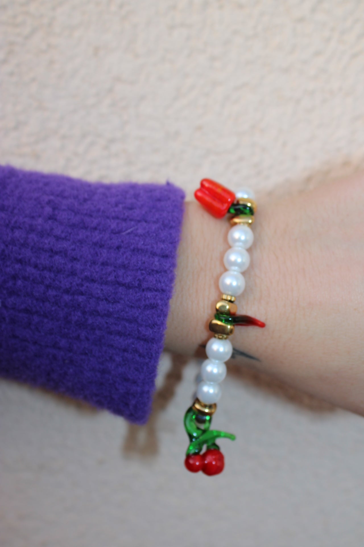 Craquez pour ce bracelet fantaisie en perles de nacrées orné de jolis motifs fruits, pour une touche de fraîcheur et de poésie au poignet. Avec ses couleurs douces et vibrantes, ce bijou au style bohème et printanier est parfait pour égayer vos tenues, été comme hiver.
