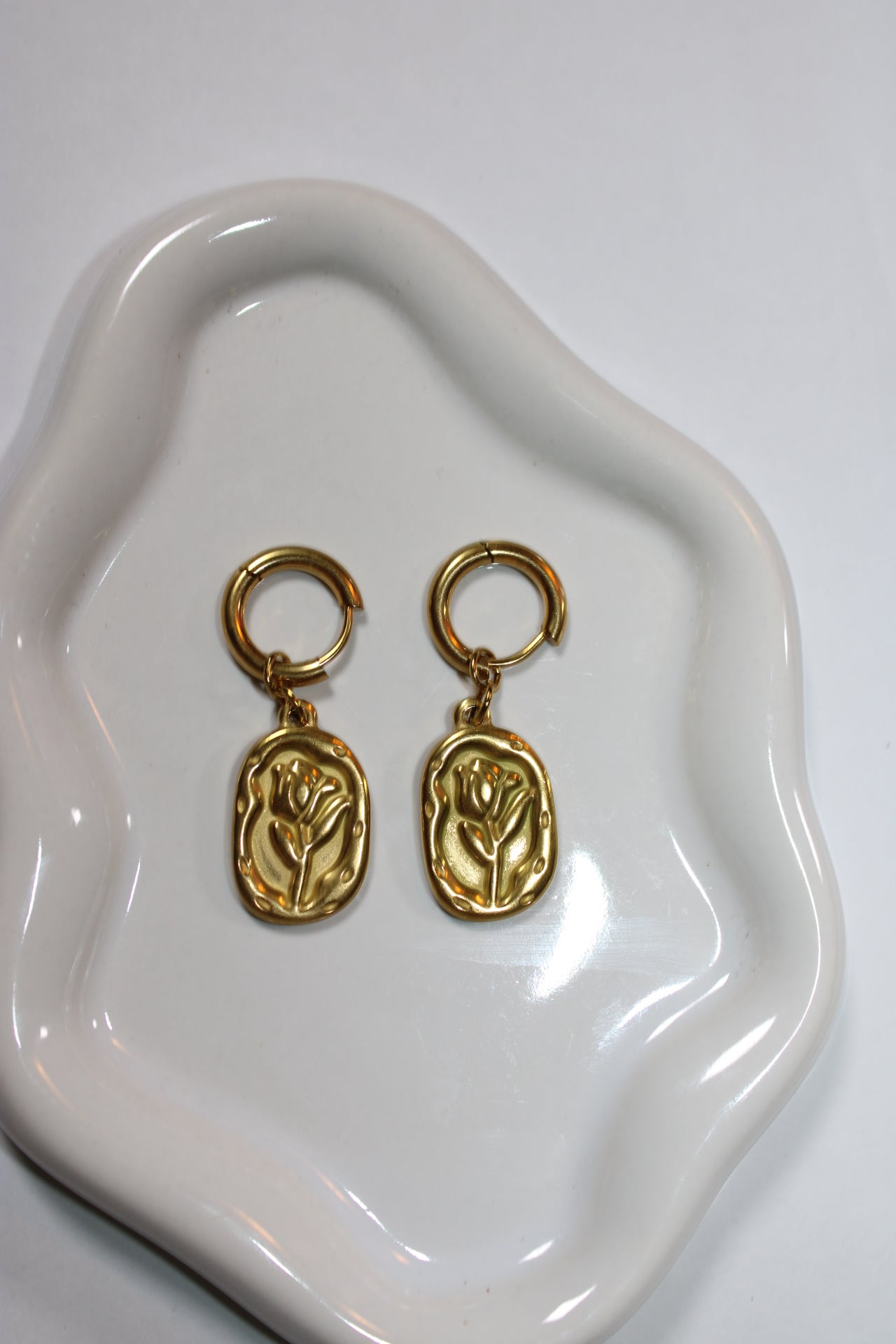 Ces boucles d'oreilles créoles en acier inoxydable doré allient élégance et légèreté. Leur design raffiné met en valeur des breloques motif fleur délicatement suspendus au centre de chaque créole, apportant une touche de féminité et de liberté. La finition dorée brillante offre une allure moderne et sophistiquée, parfaite pour sublimer toutes vos tenues, que ce soit au quotidien ou pour des occasions spéciales. Résistantes et intemporelles, ces boucles d'oreilles sont un accessoire essentiel pour un look chic et original.