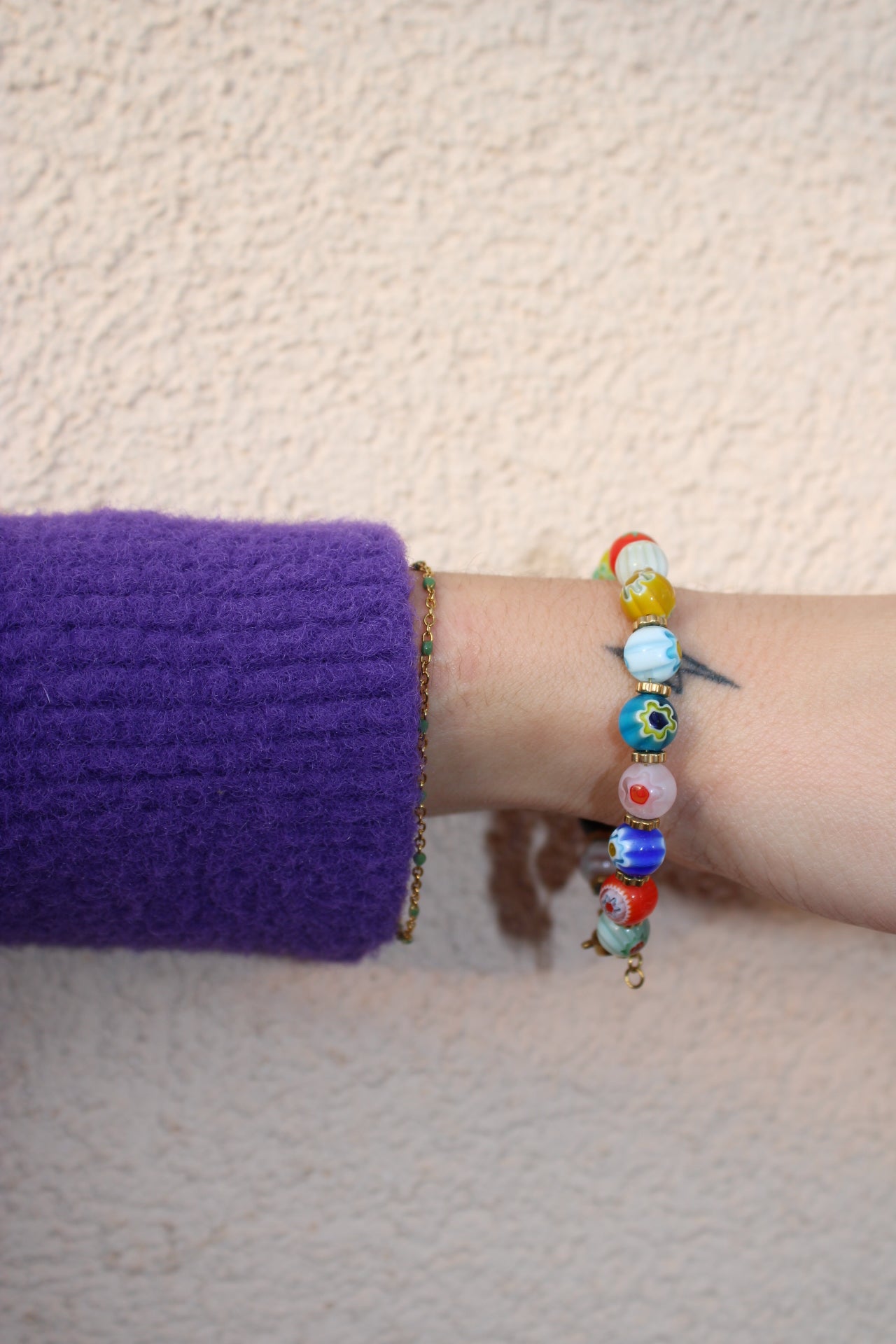 Craquez pour ce bracelet fantaisie en perles de verre orné de jolis motifs floraux faits main, pour une touche de fraîcheur et de poésie au poignet. Avec ses couleurs douces et vibrantes, ce bijou au style bohème et printanier est parfait pour égayer vos tenues, été comme hiver.
