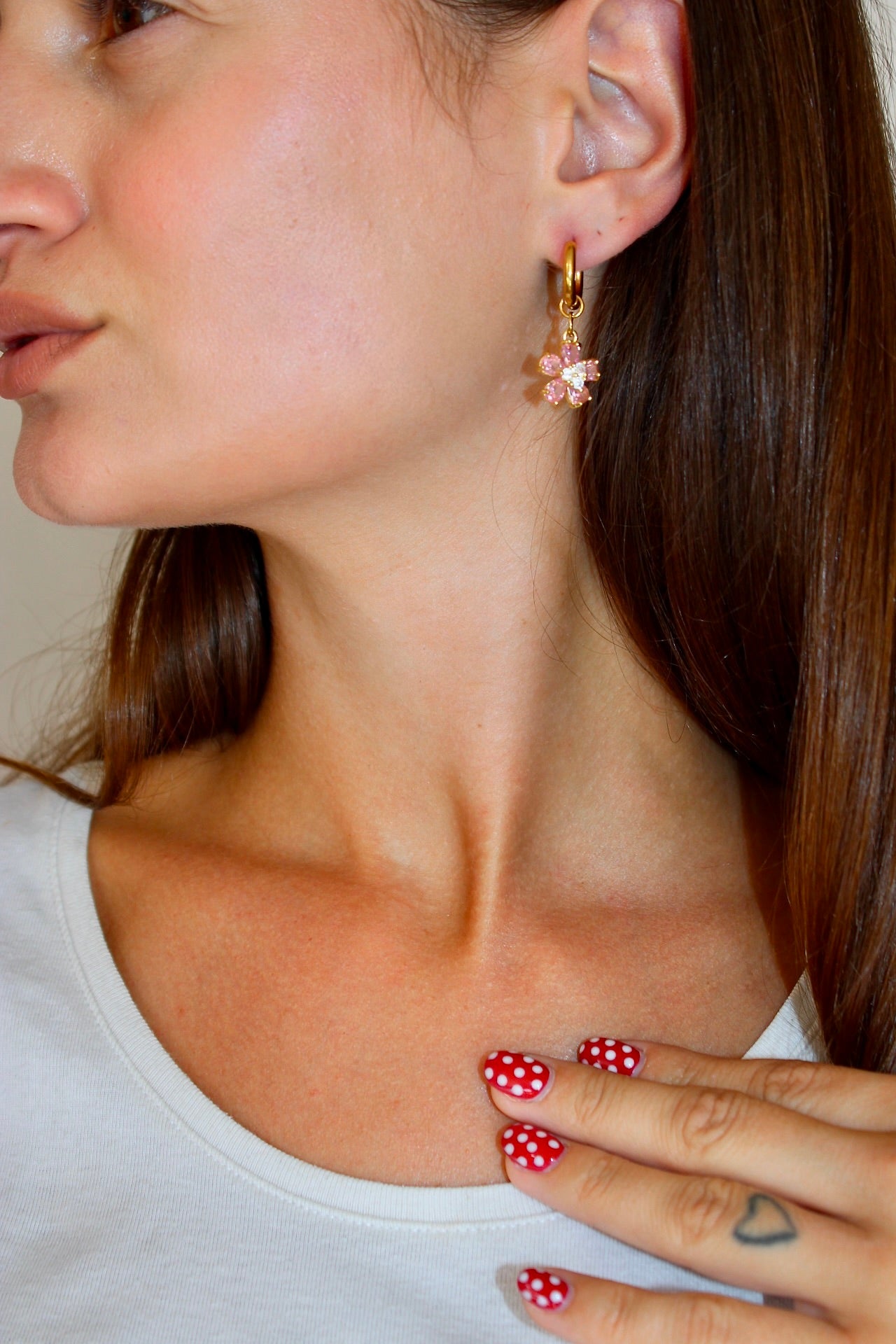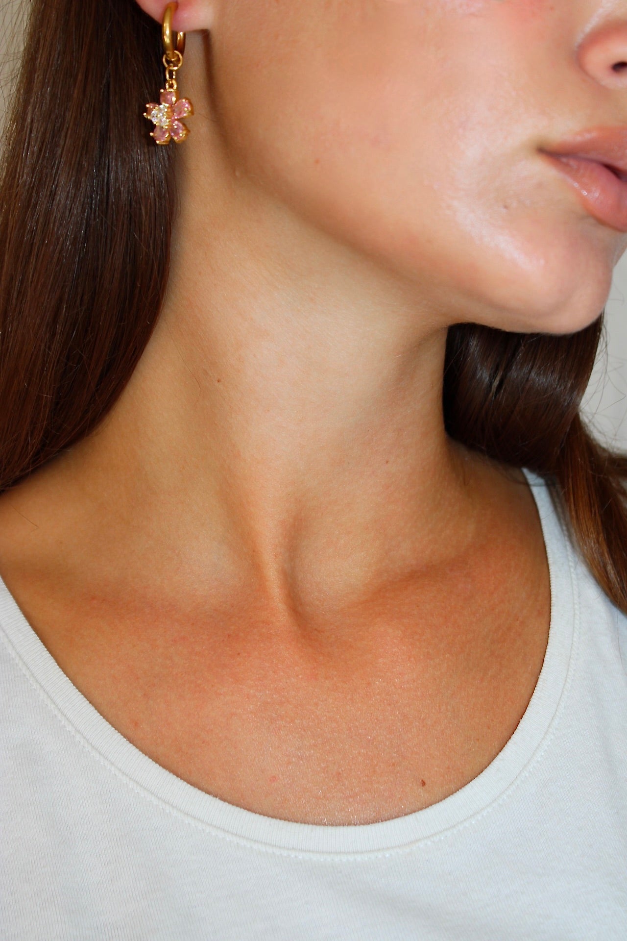 Ces boucles d'oreilles créoles en acier inoxydable doré allient élégance et légèreté. Leur design raffiné met en valeur des breloques fleur en verre à facette délicatement suspendus au centre de chaque créole, apportant une touche de féminité et de liberté. La finition dorée brillante offre une allure moderne et sophistiquée, parfaite pour sublimer toutes vos tenues, que ce soit au quotidien ou pour des occasions spéciales. Résistantes et intemporelles, ces boucles d'oreilles sont un accessoire essentiel pour un look chic et original.