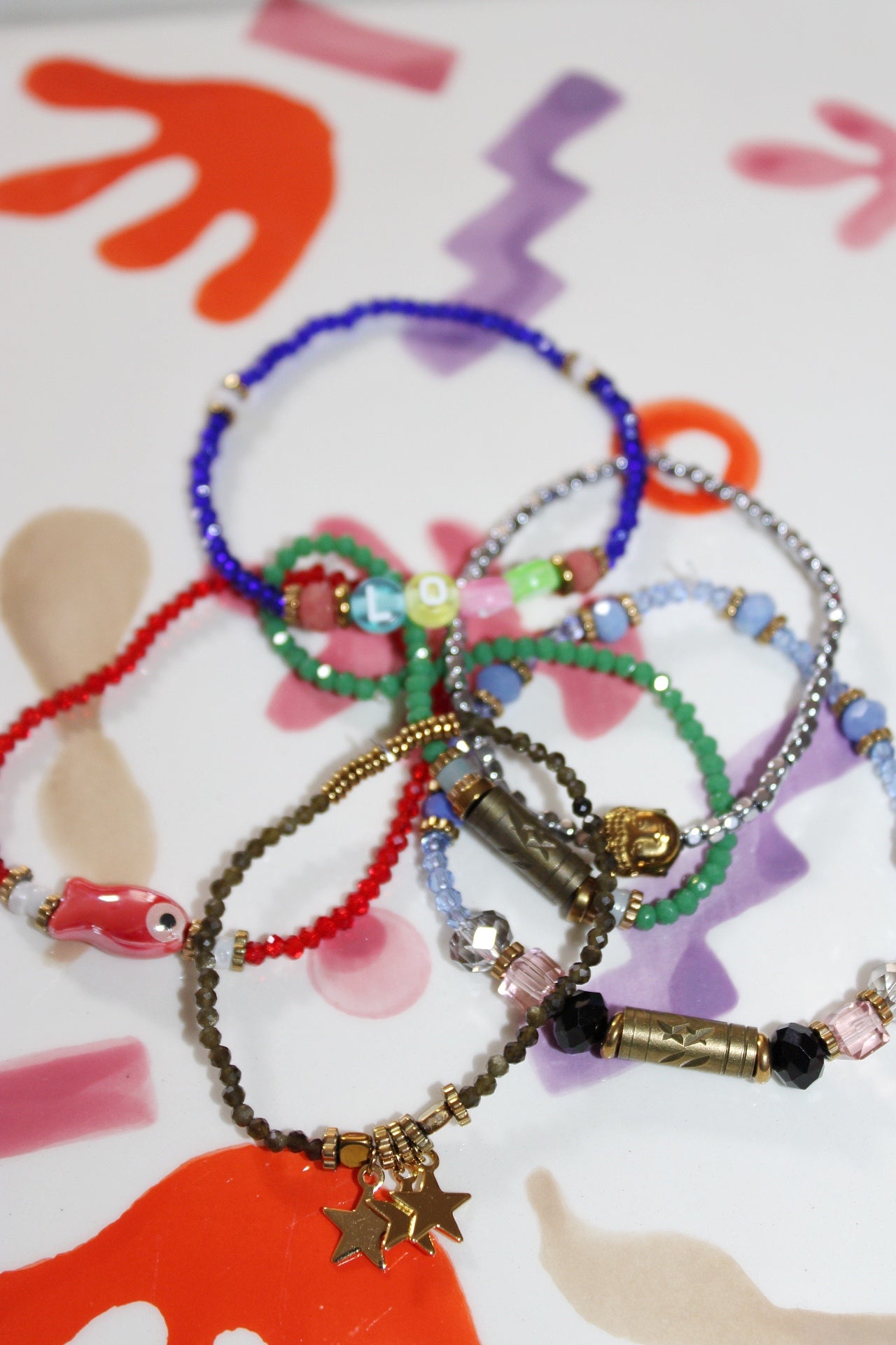 Bracelet fin et délicat composé de perles de verre à facettes, aux reflets lumineux et élégants. Monté sur un fil résistant, ce bijou léger s’adapte à tous les poignets. Idéal pour un look bohème chic, ce bracelet est parfait à porter seul ou en accumulation.