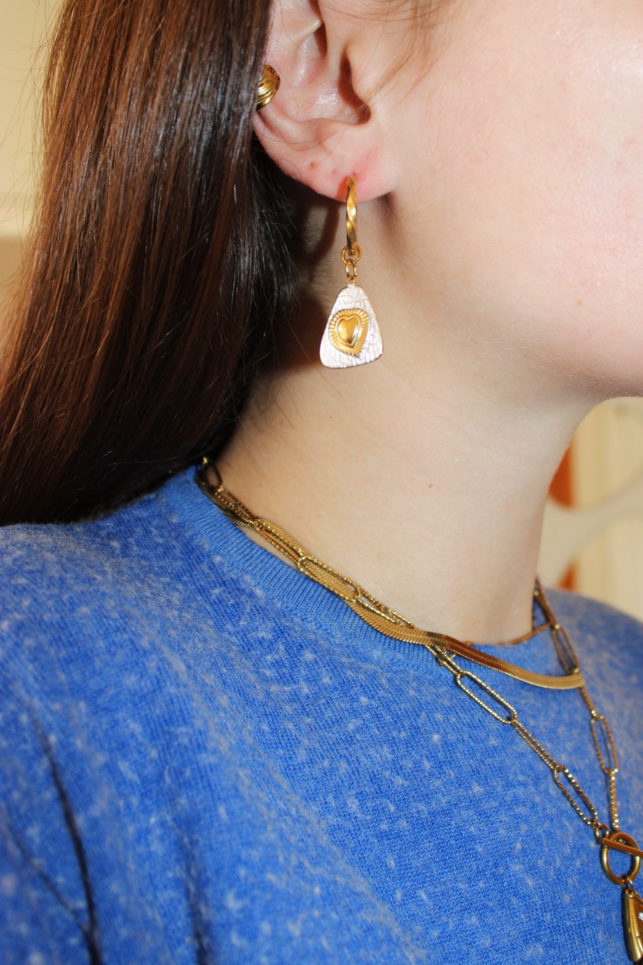Ces boucles d'oreilles créoles en acier inoxydable doré allient élégance et légèreté. Leur design raffiné met en valeur des breloques délicatement suspendus au centre de chaque créole, apportant une touche de féminité et de liberté. La finition dorée brillante offre une allure moderne et sophistiquée, parfaite pour sublimer toutes vos tenues, que ce soit au quotidien ou pour des occasions spéciales. Résistantes et intemporelles, ces boucles d'oreilles sont un accessoire essentiel pour un look chic et original.