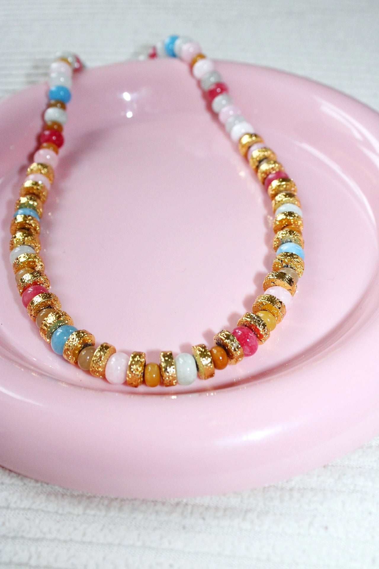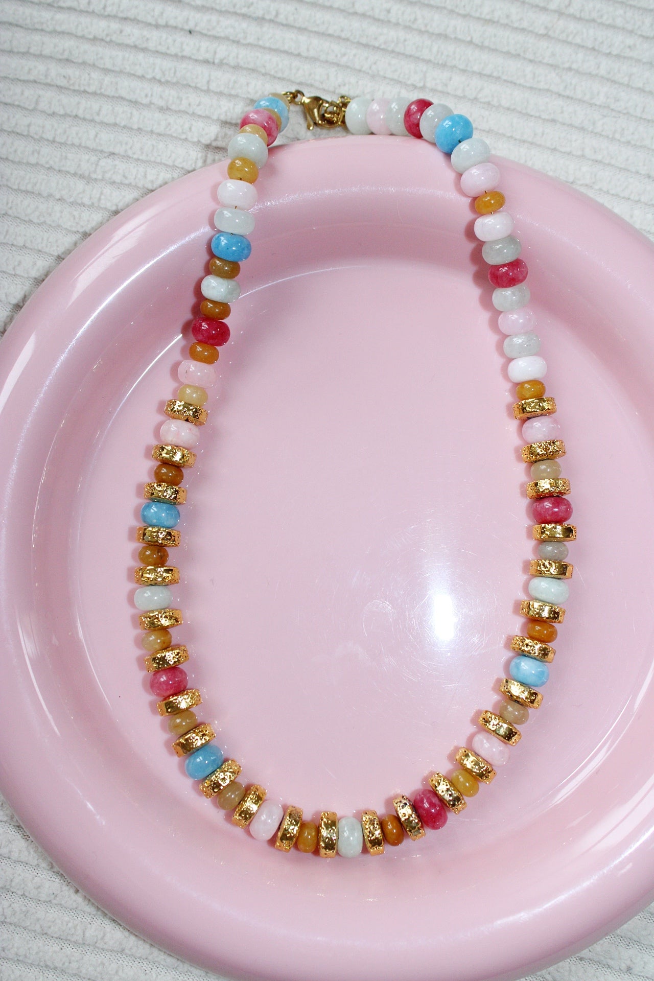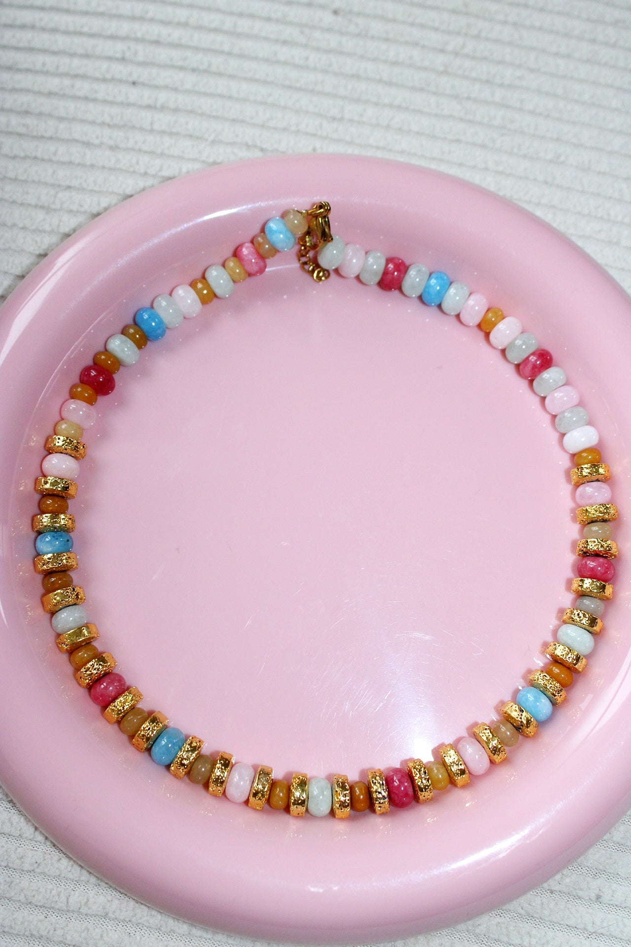 Collier fantaisie délicat composé de perles de pierres naturelles : morganite, angélite et aigue-marine en rondelles, offrant une palette de couleurs douces et apaisantes. Ce collier en pierres naturelles séduit par son style féminin et lumineux, parfait pour ajouter une touche élégante et raffinée à toutes les tenues. Chaque perle met en valeur la beauté authentique des minéraux, créant un bijou fantaisie unique, tendance et idéal pour les amatrices d’accessoires artisanaux. Un collier morganite angélite aigue-marine plein de charme, parfait pour offrir ou compléter une collection de bijoux en pierres naturelles.