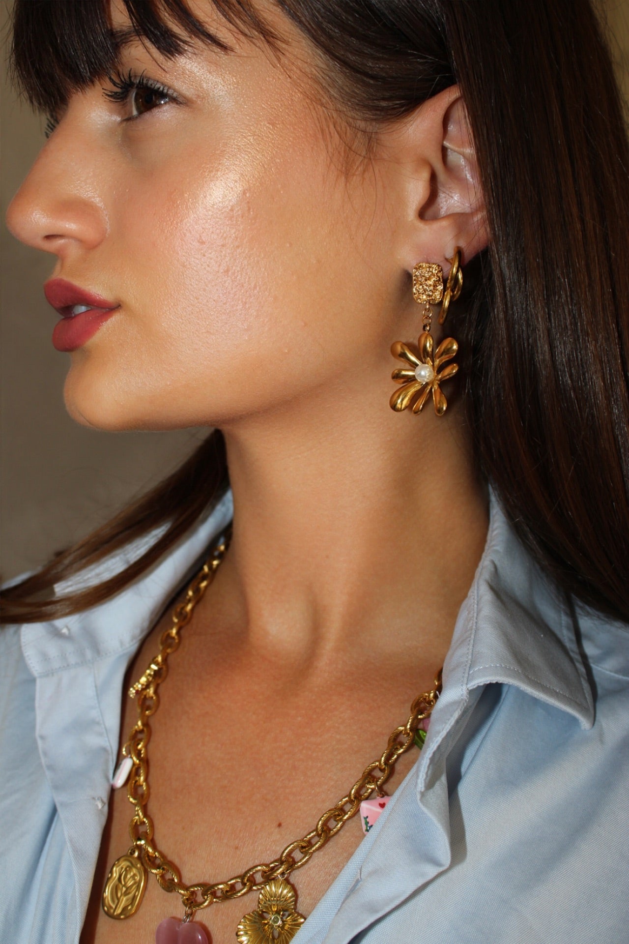 Ces boucles d'oreilles pendantes en acier inoxydable doré allient élégance et légèreté. Leur design raffiné met en valeur une chaînette en acier inoxydable délicatement suspendus par un strass au centre de chaque créole, apportant une touche de féminité et de liberté. La finition dorée brillante offre une allure moderne et sophistiquée, parfaite pour sublimer toutes vos tenues, que ce soit au quotidien ou pour des occasions spéciales. Résistantes et intemporelles, ces boucles d'oreilles sont un accessoire essentiel pour un look chic et original.