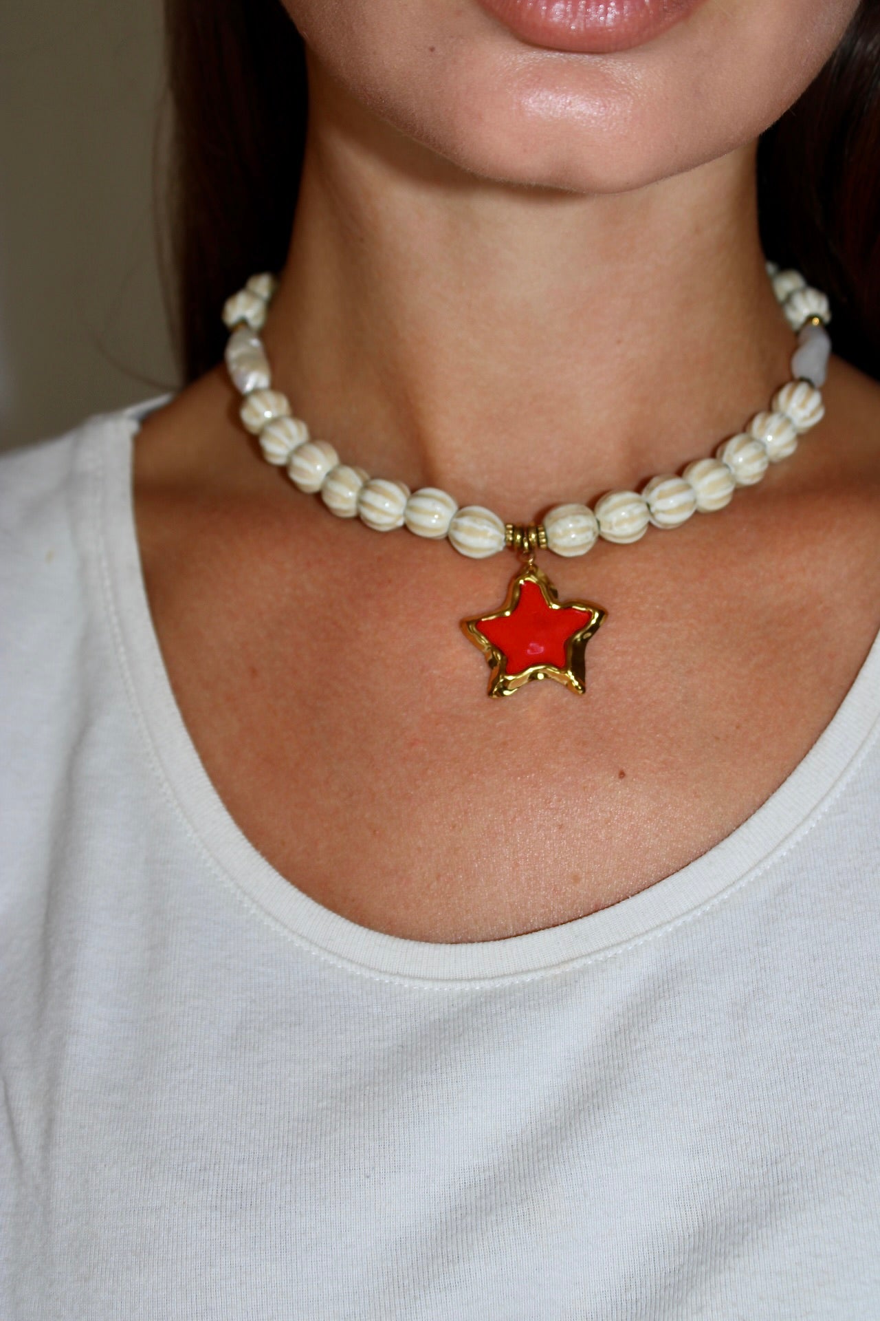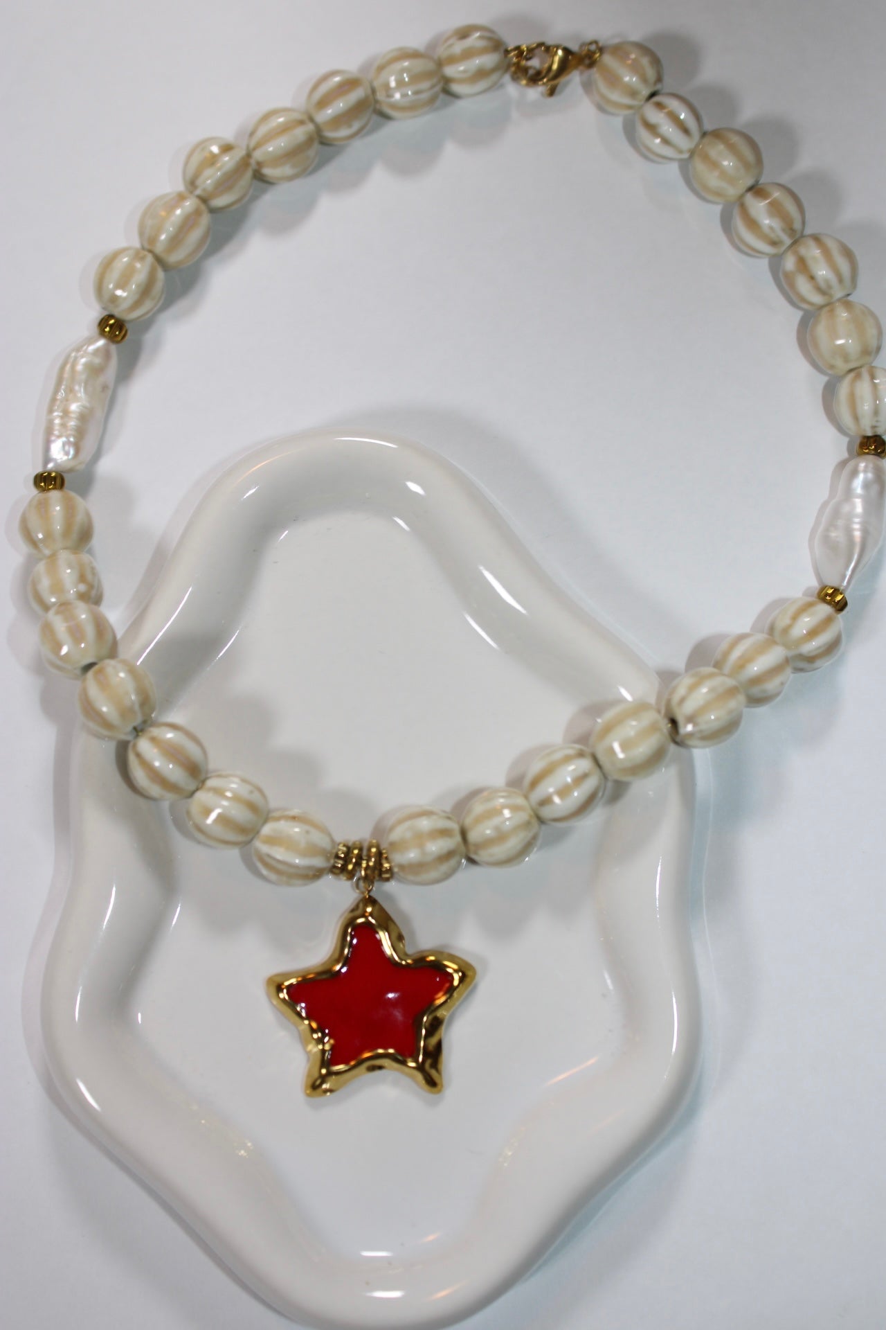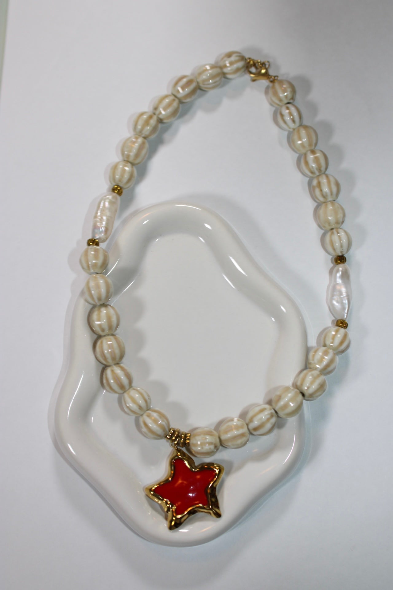 Collier en perles rondes en porcelaine et charms, confectionné à la main avec soin dans un atelier de création de bijoux. Ce bijou élégant et intemporel combine la sobriété des perles nacrées et l'originalité des charms en acier inoxydable, apportant une touche de personnalisation. Parfait pour ajouter une note sophistiquée à n'importe quelle tenue, ce collier s'adapte aussi bien à des occasions formelles qu'à un style quotidien. Idéal pour offrir ou pour se faire plaisir, ce bijou de fabrication artisanale incarne l'élégance et l'authenticité.