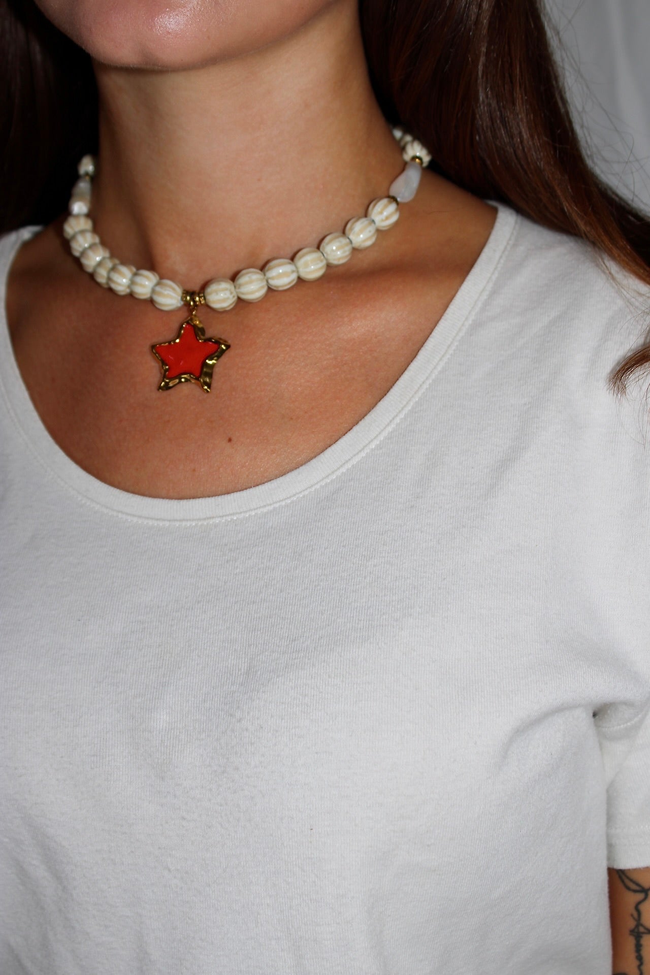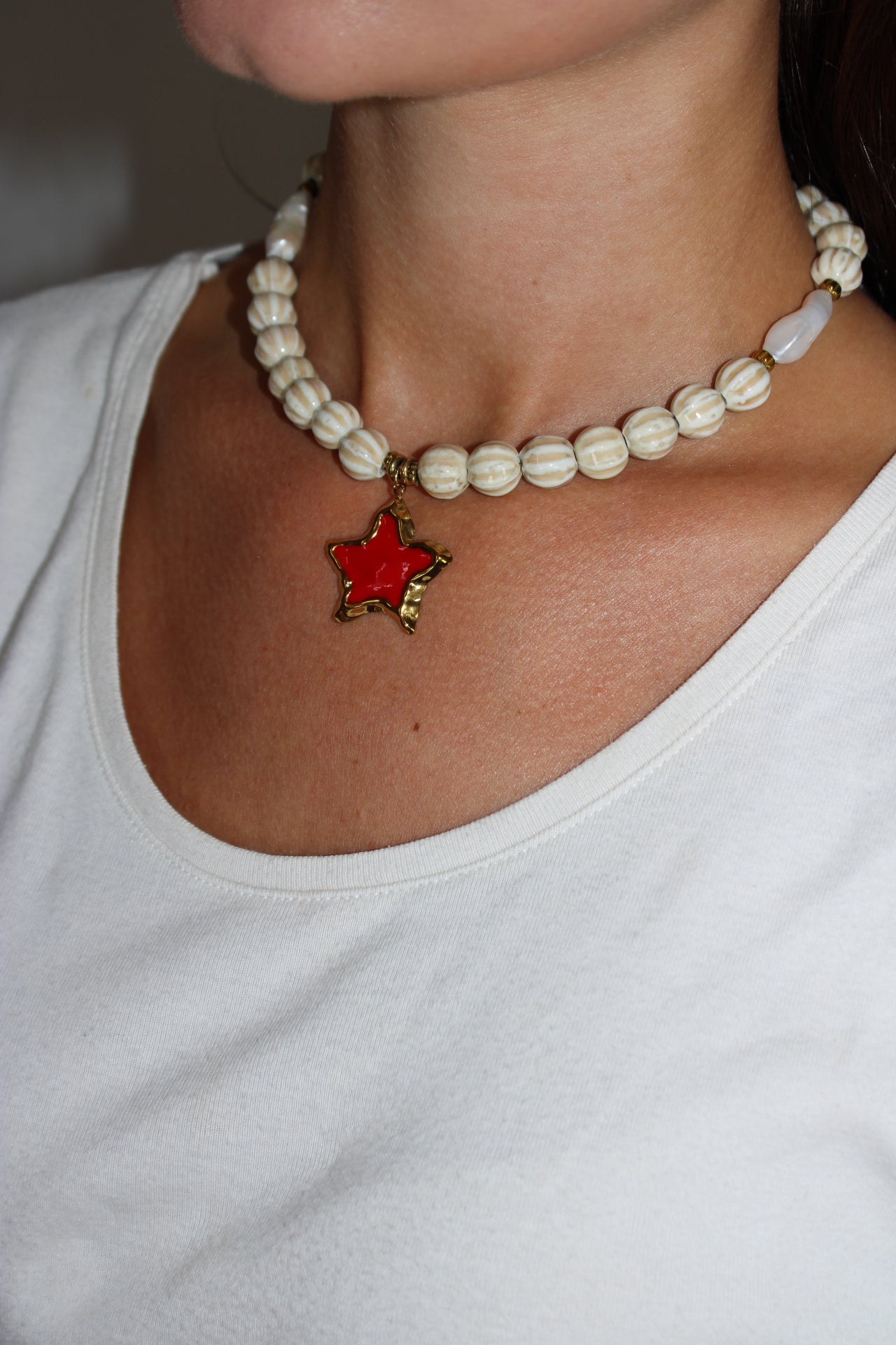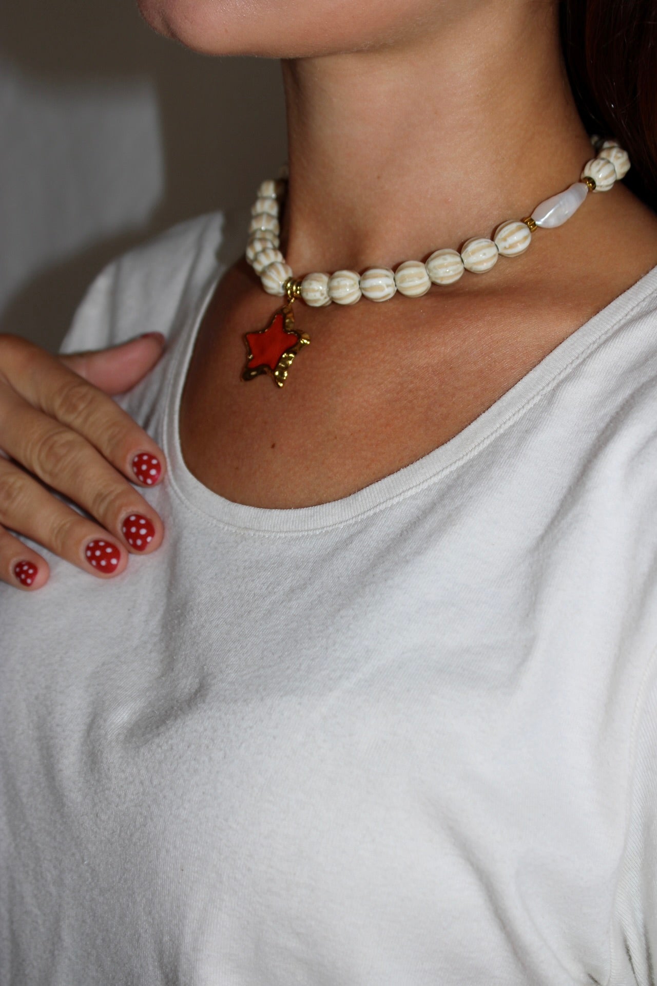 Collier en perles rondes en porcelaine et charms, confectionné à la main avec soin dans un atelier de création de bijoux. Ce bijou élégant et intemporel combine la sobriété des perles nacrées et l'originalité des charms en acier inoxydable, apportant une touche de personnalisation. Parfait pour ajouter une note sophistiquée à n'importe quelle tenue, ce collier s'adapte aussi bien à des occasions formelles qu'à un style quotidien. Idéal pour offrir ou pour se faire plaisir, ce bijou de fabrication artisanale incarne l'élégance et l'authenticité.