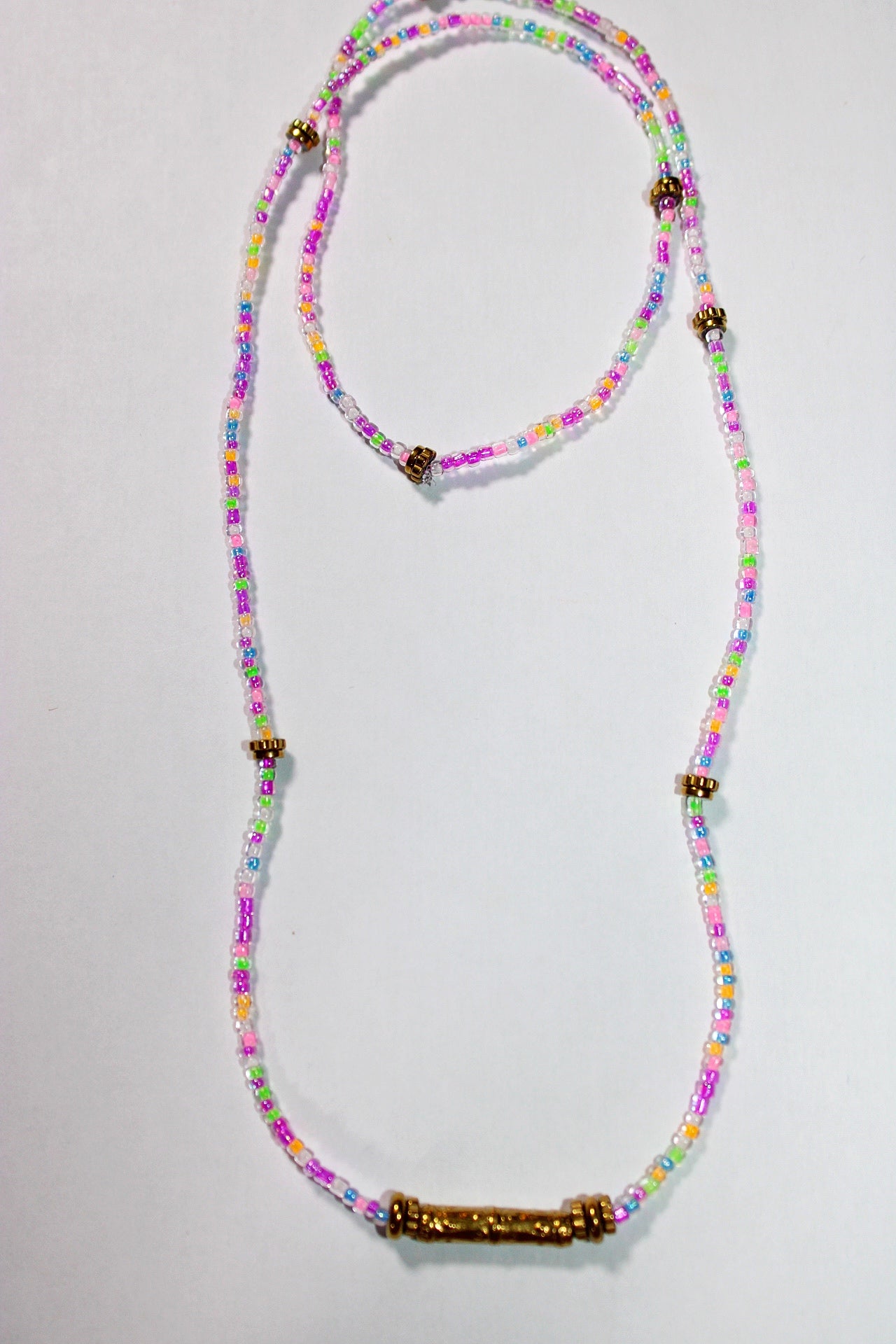 Apportez une touche originale et coloré à votre look avec ce collier sautoir fantaisie en petites perles de verres. Orné de breloques délicates, ce bijou évoque l’esprit bohème chic. Léger et facile à porter, ce collier long sublimera vos tenues festives comme vos looks décontractés du quotidien. Idéal pour les amatrices de bijoux artisanaux, il mêle avec finesse couleurs vibrantes et détails bohèmes.