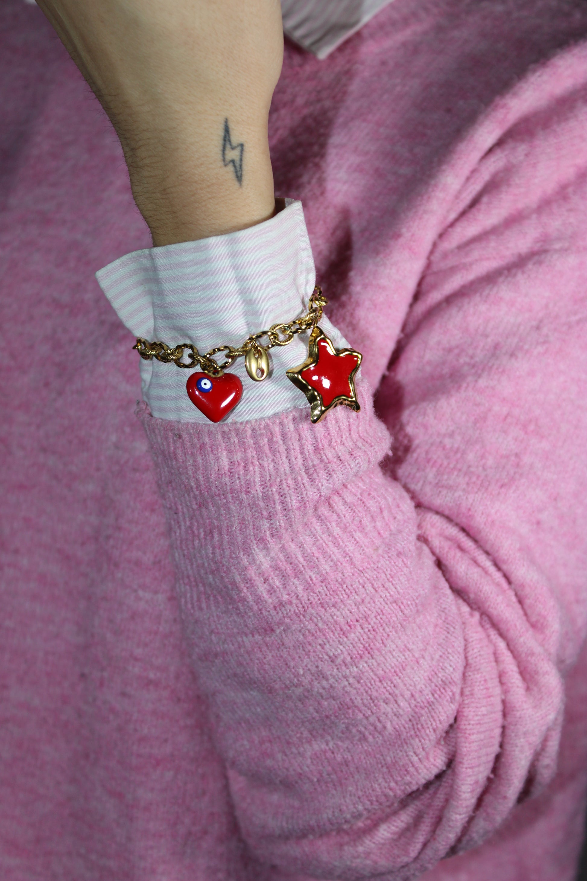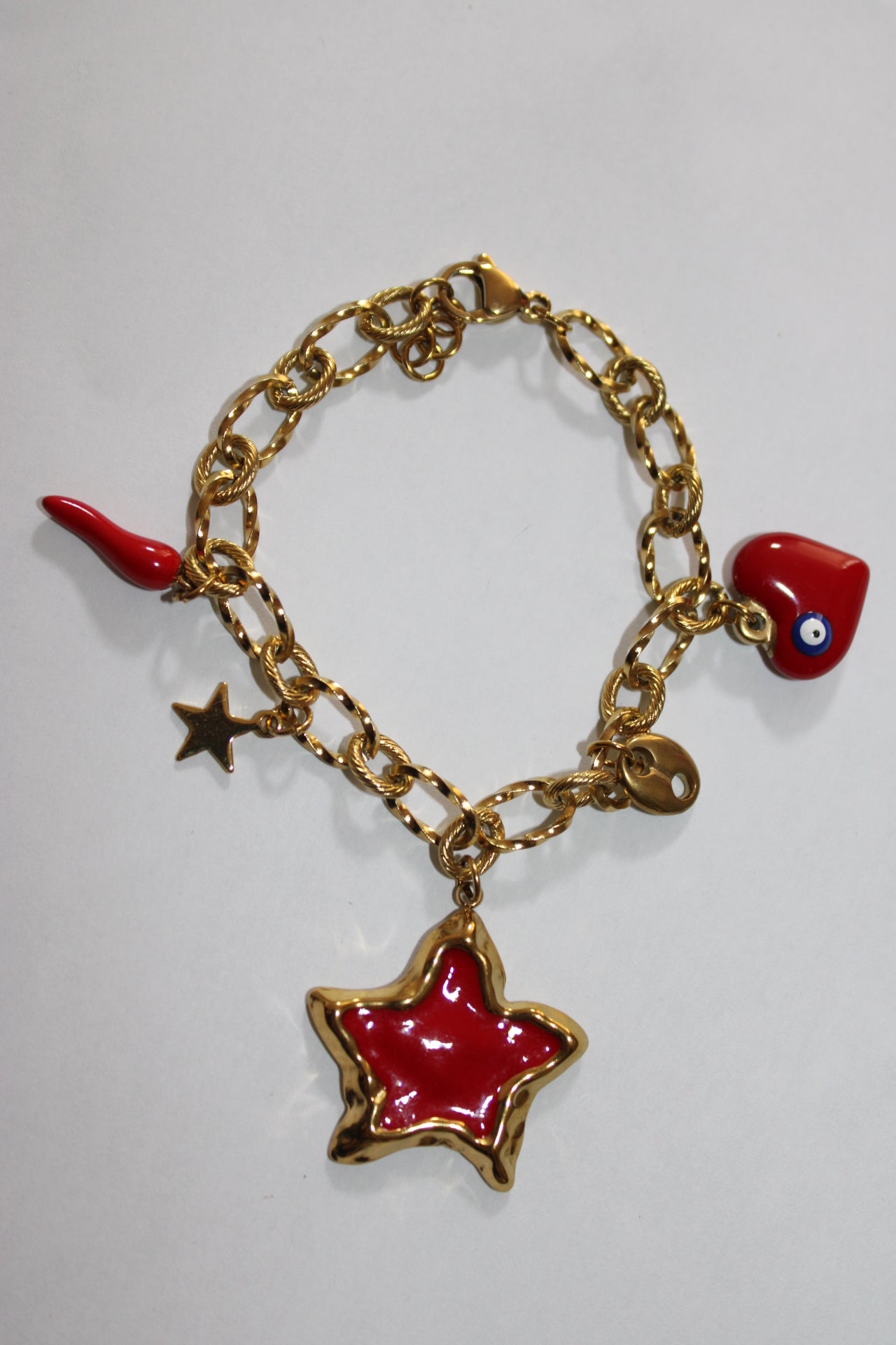 Craquez pour ce bracelet tendance en chaîne dorée fabriqué en acier inoxydable, orné d'une breloque délicatequi apporte une touche de fantaisie chic.