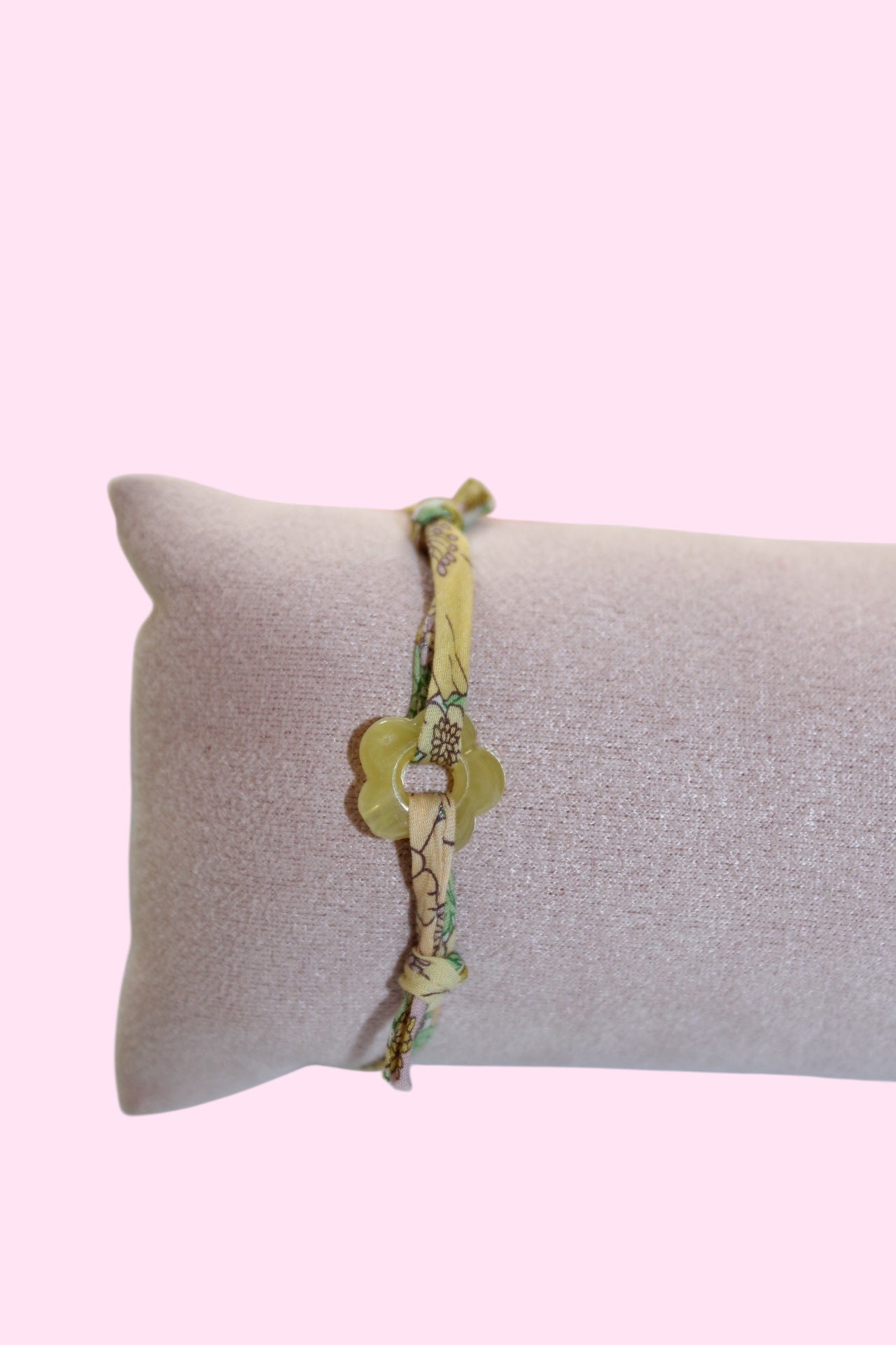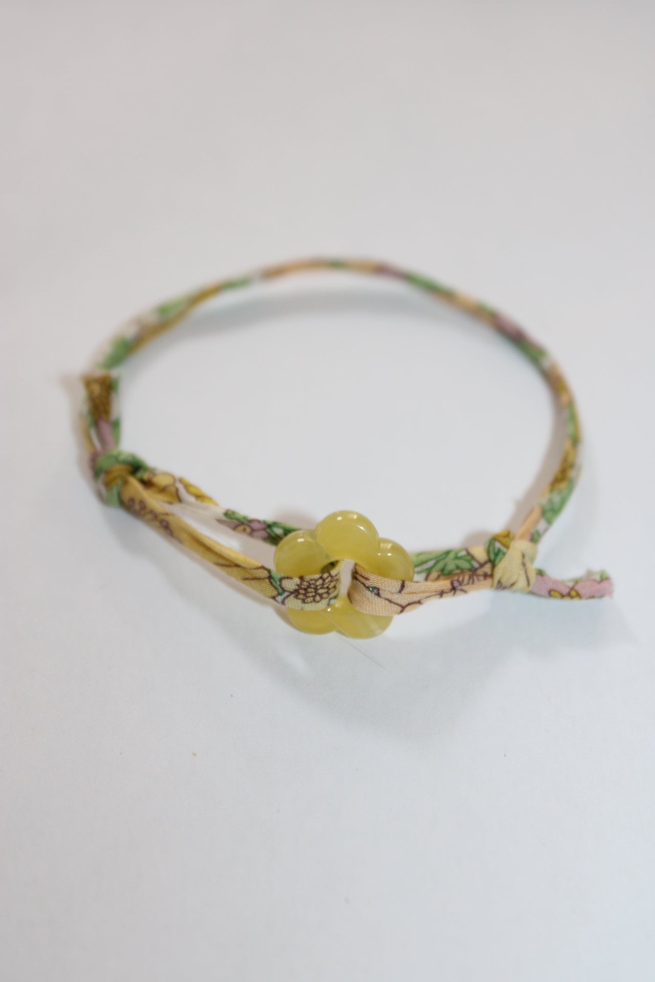 Réalisé à la main avec un ruban Liberty aux motifs floraux emblématiques, chaque bracelet est unique et apporte une touche de poésie à votre poignet.