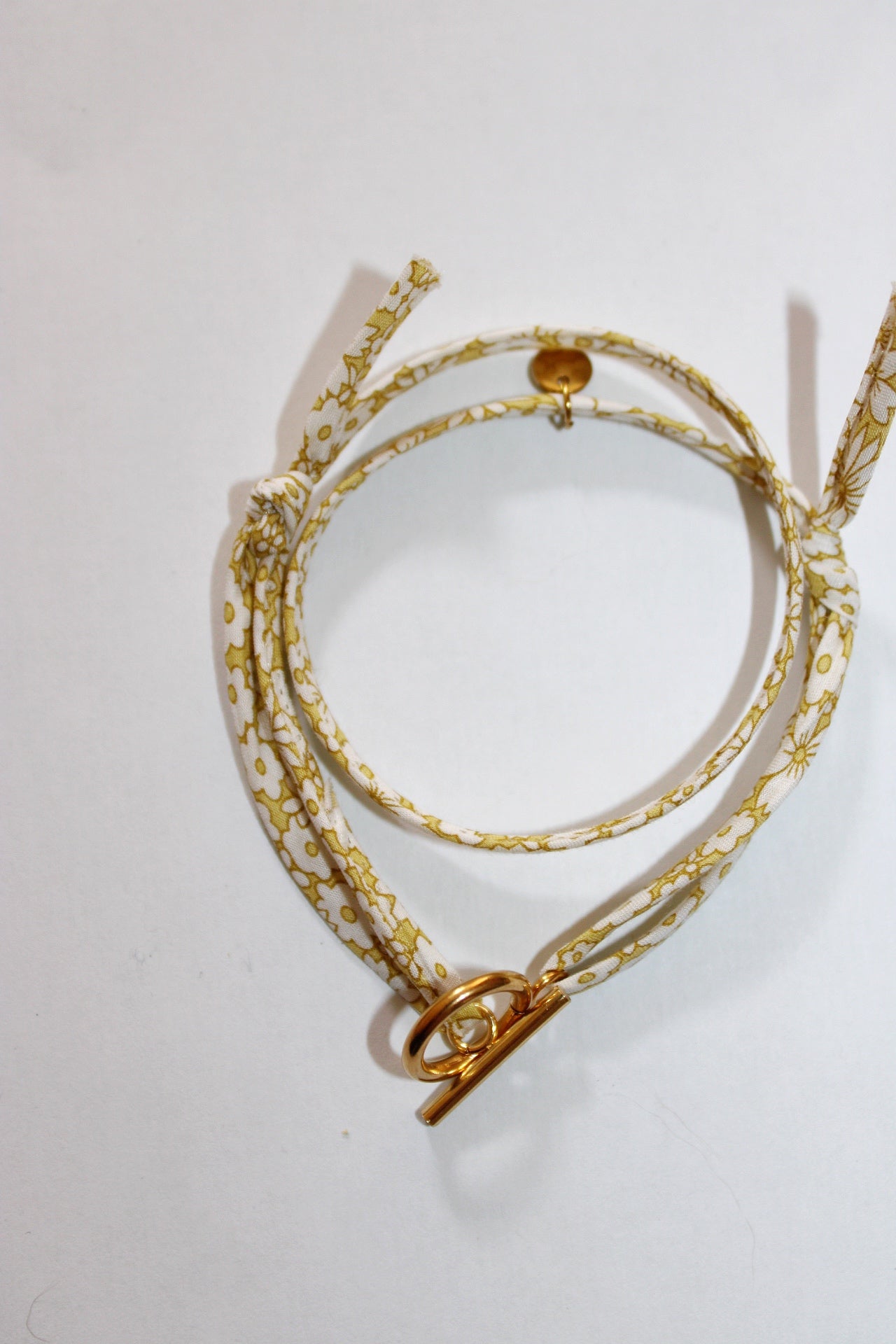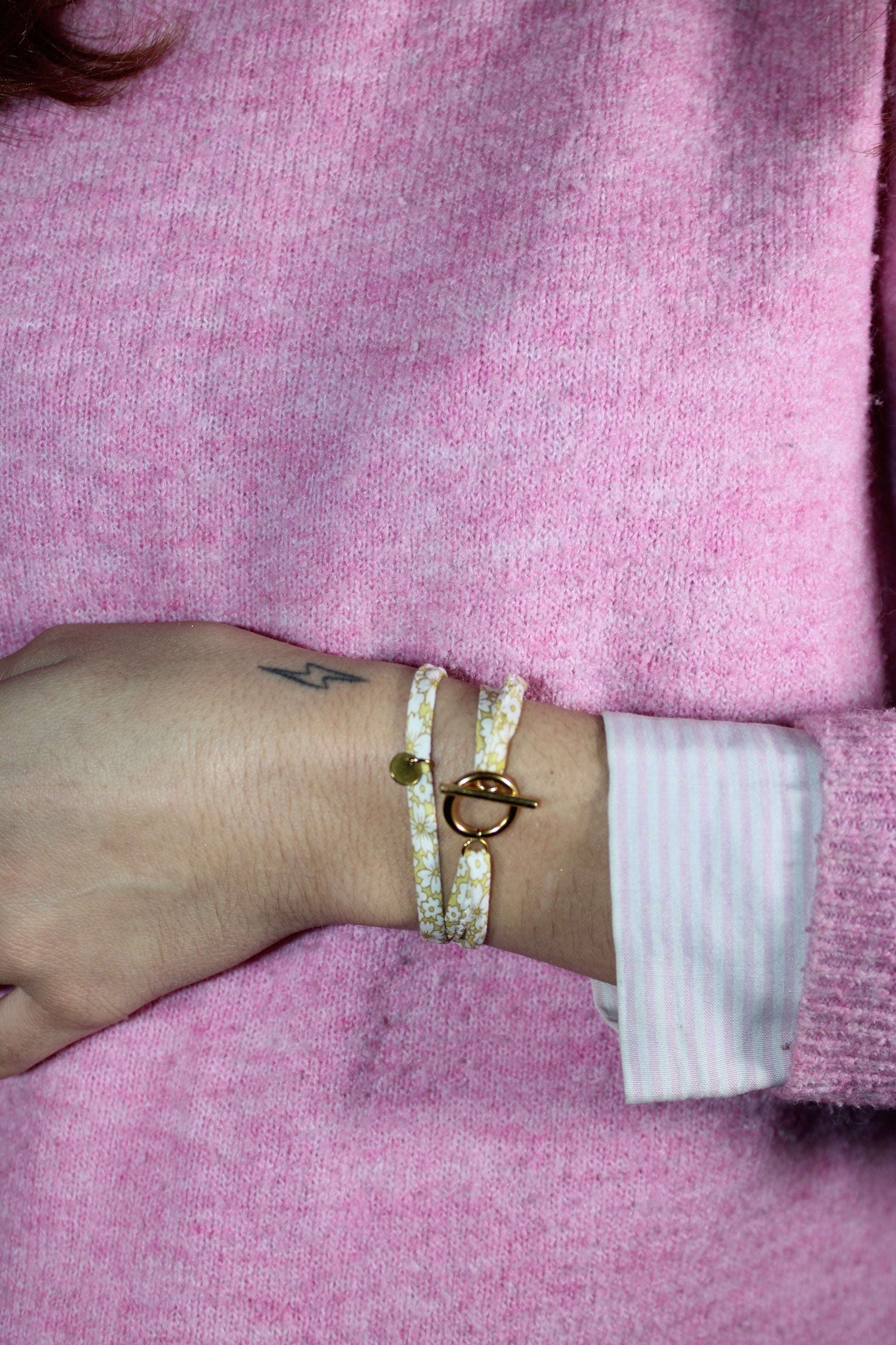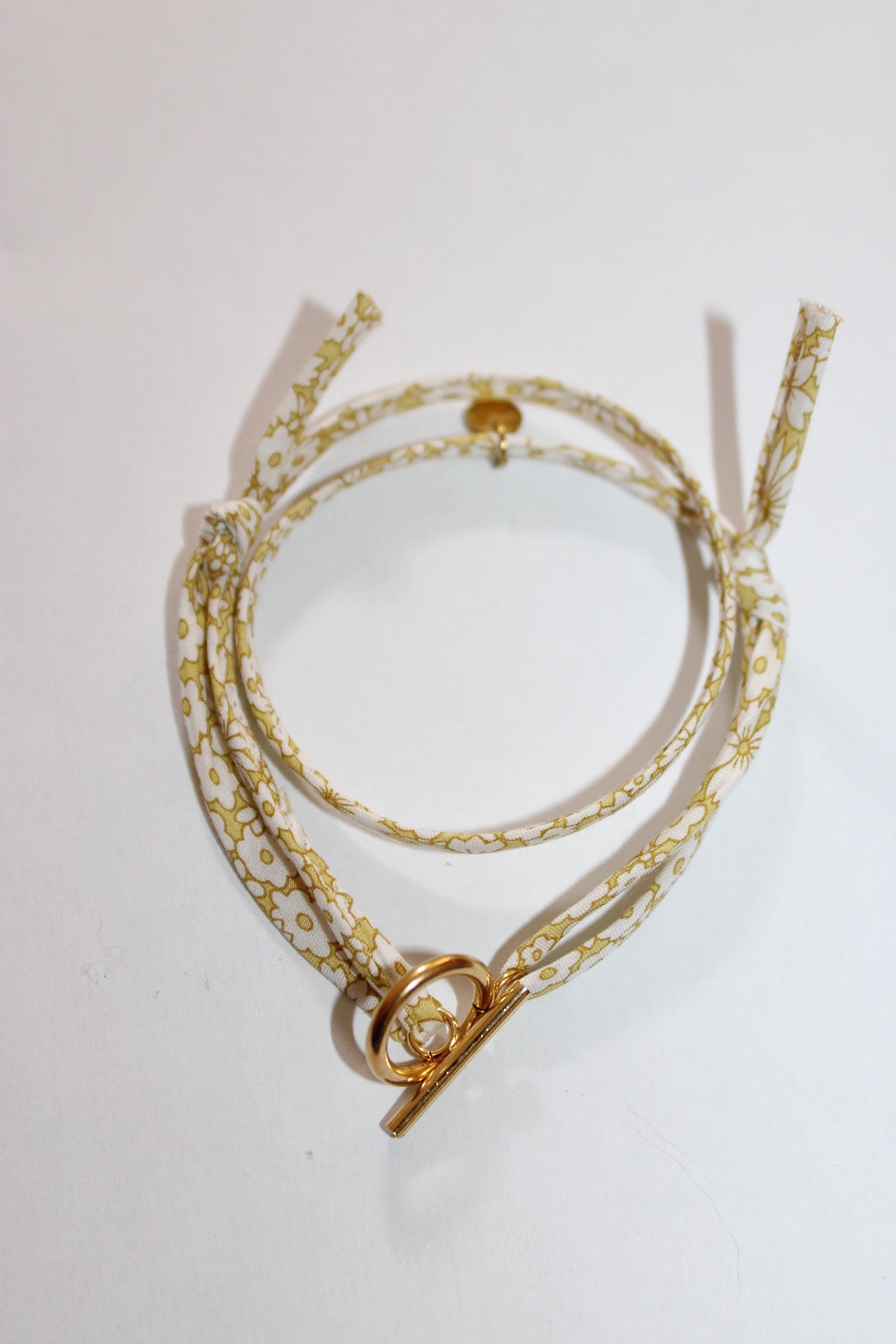 Réalisé à la main avec un ruban Liberty aux motifs floraux emblématiques, chaque bracelet est unique et apporte une touche de poésie à votre poignet.