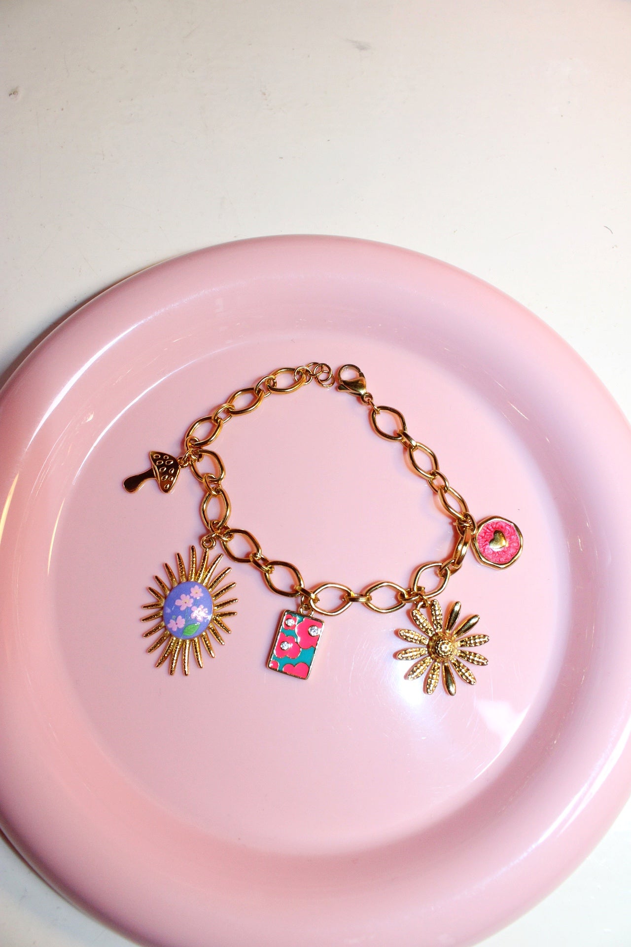 Craquez pour ce bracelet tendance en chaîne dorée fabriqué en acier inoxydable, orné d'une breloque délicatequi apporte une touche de fantaisie chic.