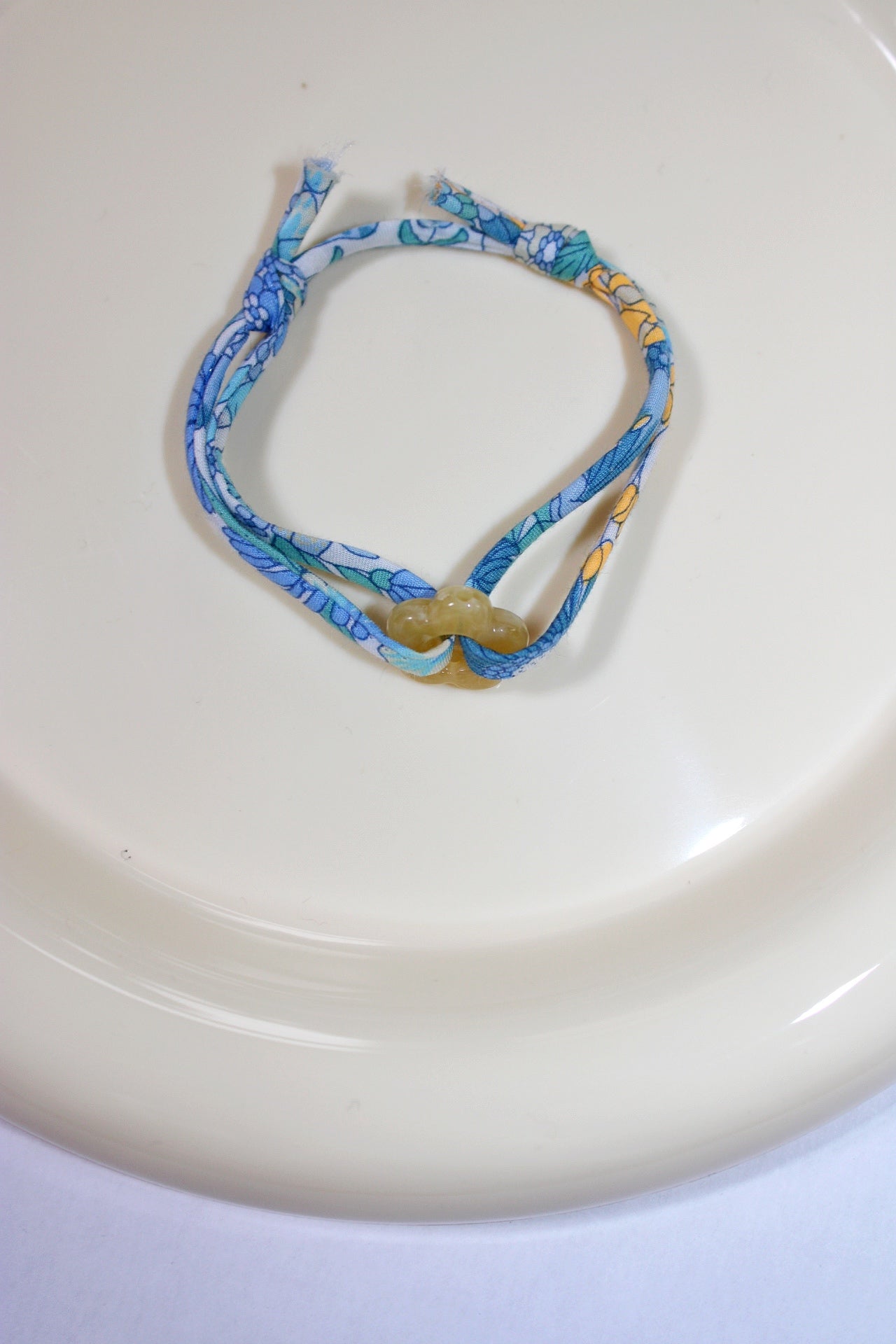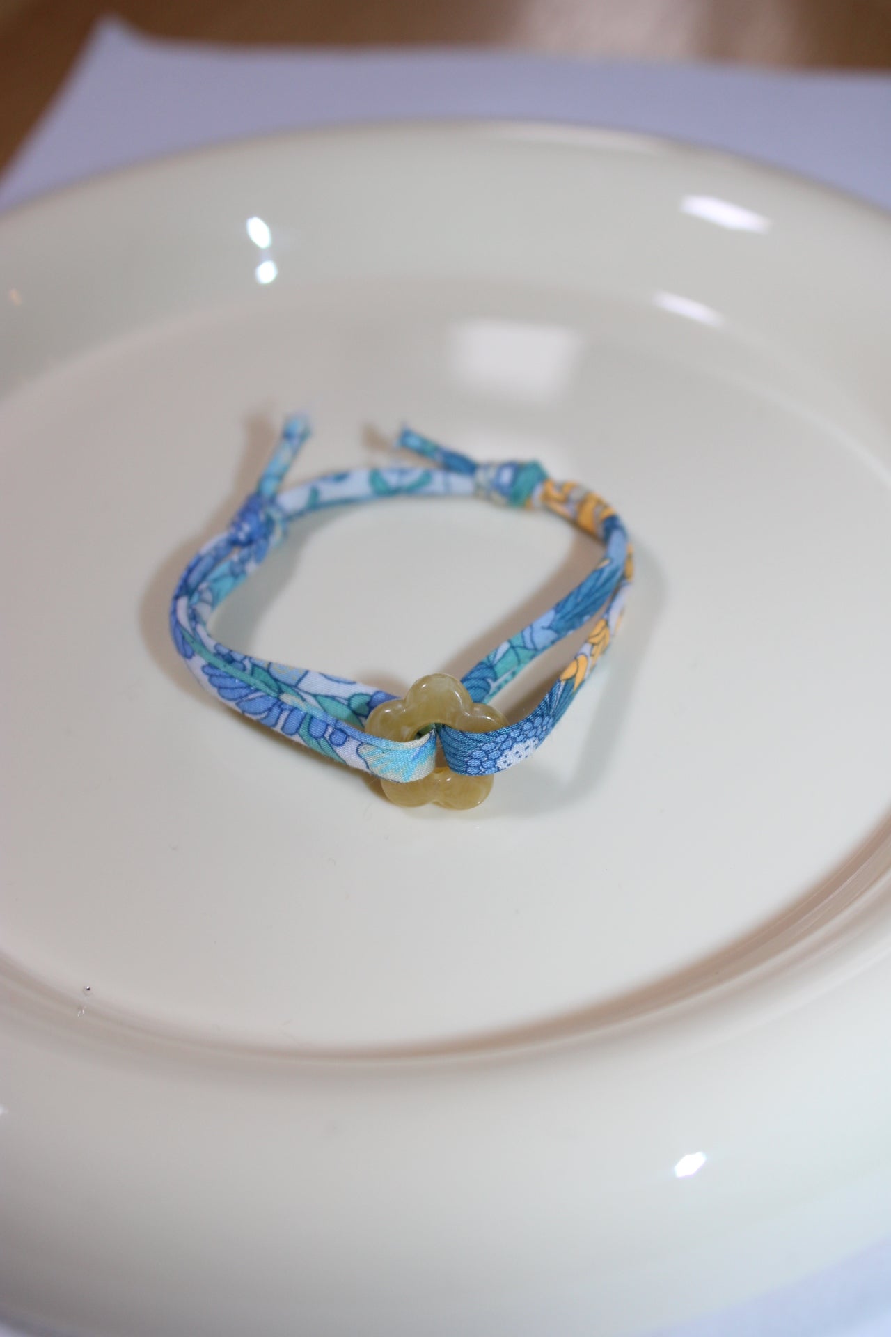 Réalisé à la main avec un ruban Liberty aux motifs floraux emblématiques, chaque bracelet est unique et apporte une touche de poésie à votre poignet.