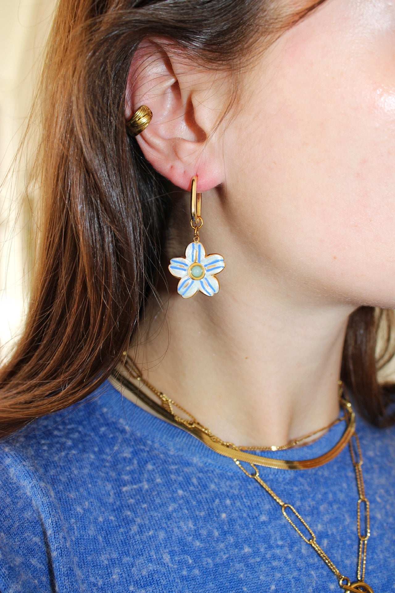 Ces boucles d'oreilles créoles en acier inoxydable doré allient élégance et légèreté. Leur design raffiné met en valeur des breloques délicatement suspendus au centre de chaque créole, apportant une touche de féminité et de liberté. La finition dorée brillante offre une allure moderne et sophistiquée, parfaite pour sublimer toutes vos tenues, que ce soit au quotidien ou pour des occasions spéciales. Résistantes et intemporelles, ces boucles d'oreilles sont un accessoire essentiel pour un look chic et original.