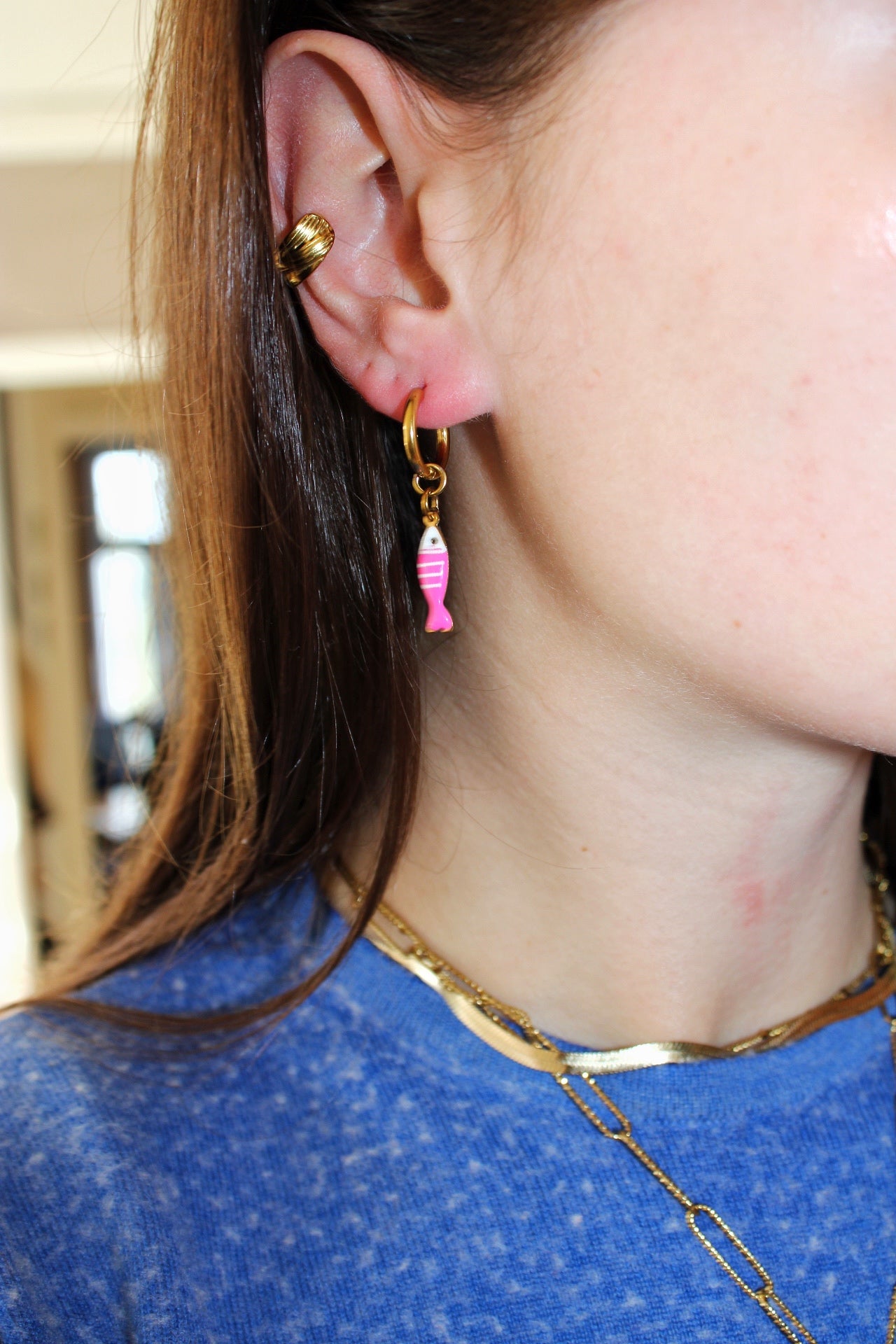Ces boucles d'oreilles créoles en acier inoxydable doré allient élégance et légèreté. Leur design raffiné met en valeur des breloques délicatement suspendus au centre de chaque créole, apportant une touche de féminité et de liberté. La finition dorée brillante offre une allure moderne et sophistiquée, parfaite pour sublimer toutes vos tenues, que ce soit au quotidien ou pour des occasions spéciales. Résistantes et intemporelles, ces boucles d'oreilles sont un accessoire essentiel pour un look chic et original.