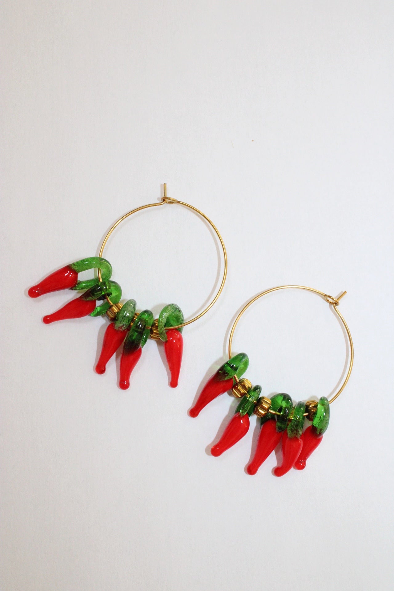 Ces boucles d'oreilles créoles en acier inoxydable doré allient élégance et légèreté. Leur design raffiné met en valeur des piments en verre soufflé apportant une touche de féminité et de liberté. La finition dorée offre une allure moderne et sophistiquée, parfaite pour sublimer toutes vos tenues, que ce soit au quotidien ou pour des occasions spéciales. Résistantes et intemporelles, ces boucles d'oreilles sont un accessoire essentiel pour un look chic et original.